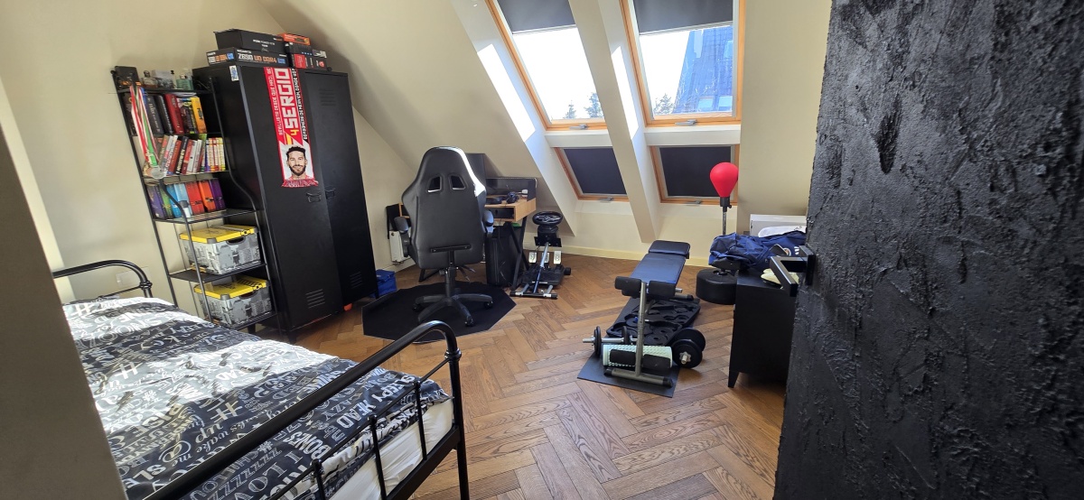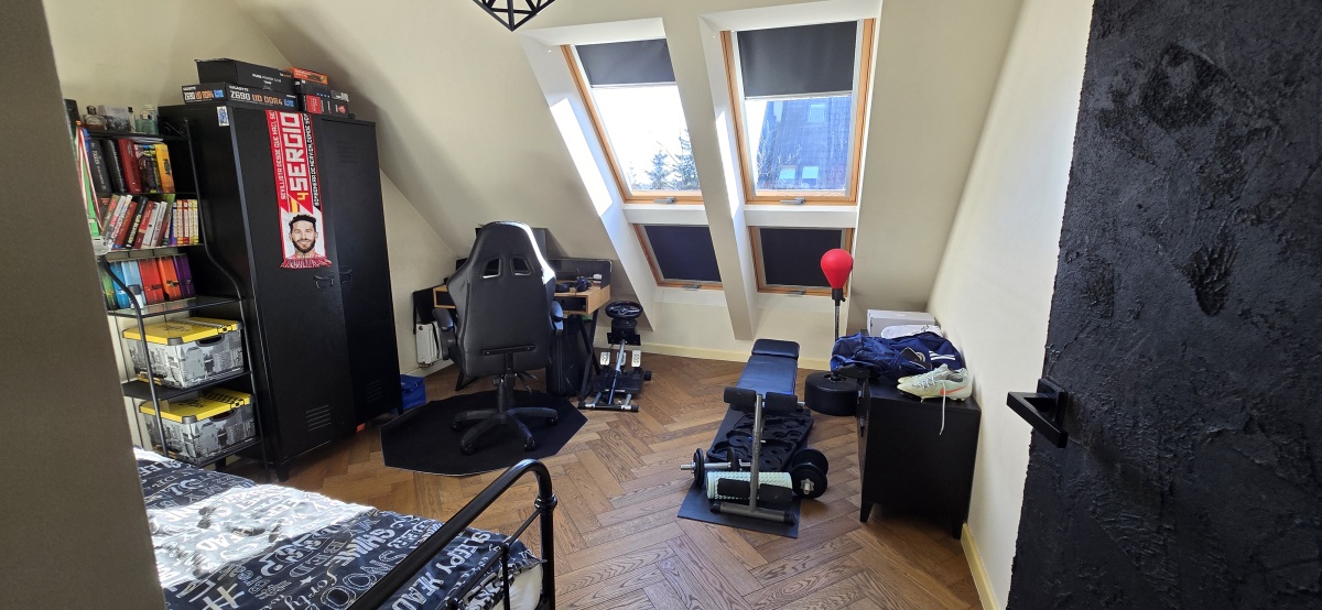 Zaadaptowane poddasze oferuje kolejną pełnowartościową przestrzeń do własnej aranżacji – prywatna siłownia, kino domowe, strefa hobby, dodatkowy gabinet lub apartament gościnny.
