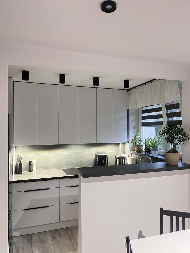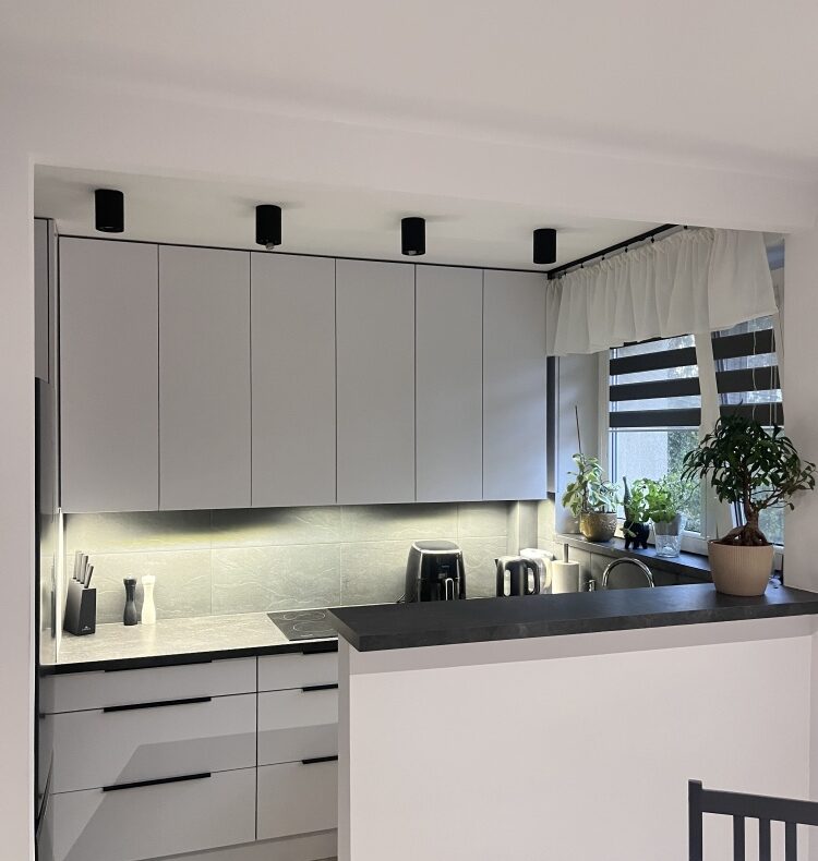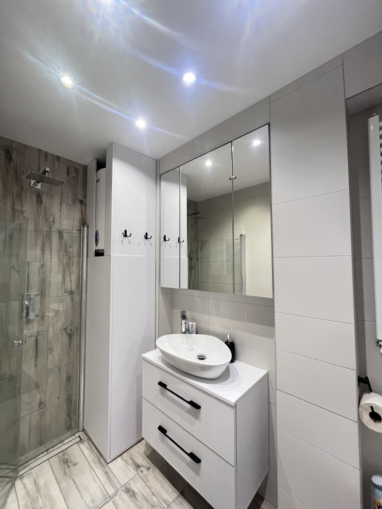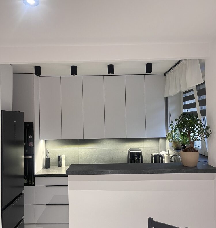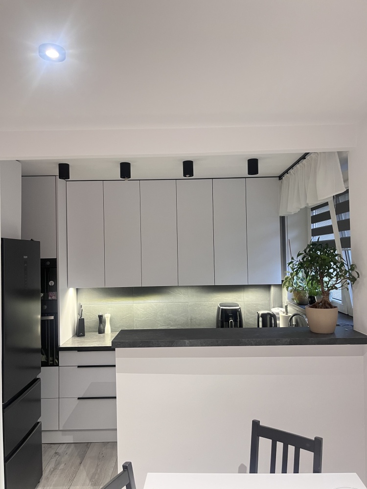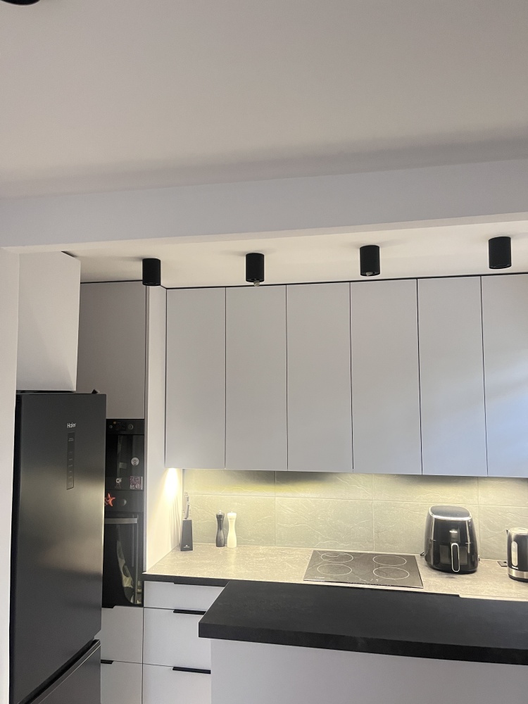 Sprzęt AGD: lodówka, pralko-suszarka, piekarnik, płyta indukcyjna, mikrofalówka, zmywarka w zabudowie, bojler w łazience