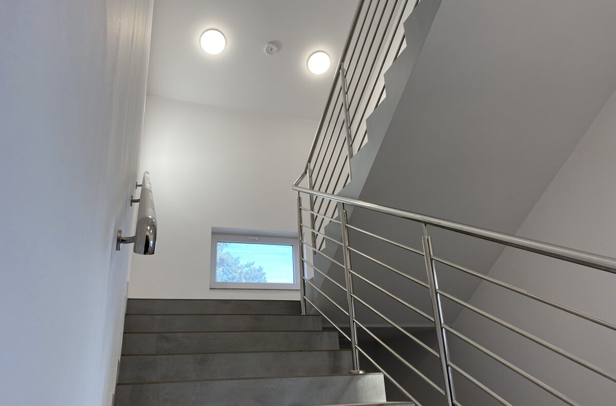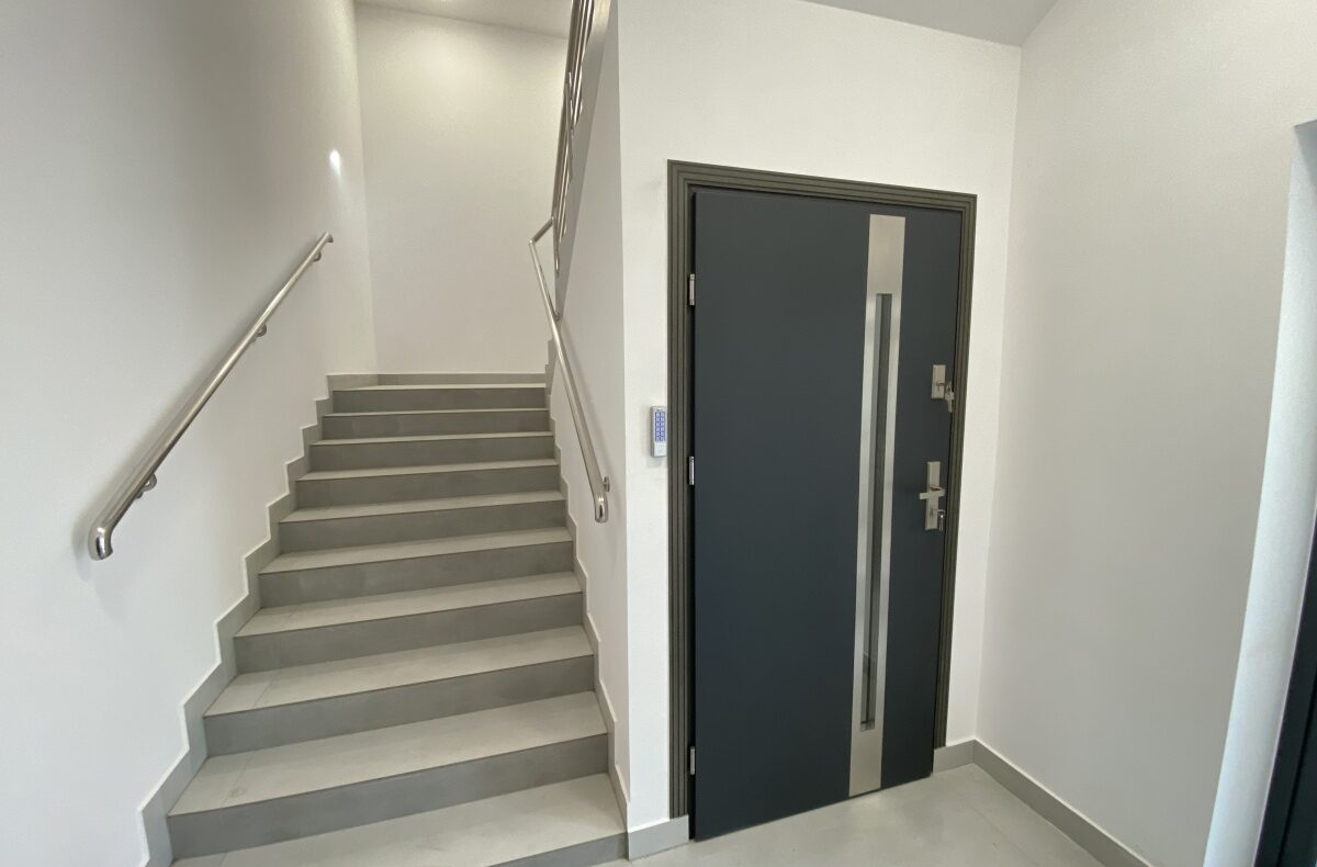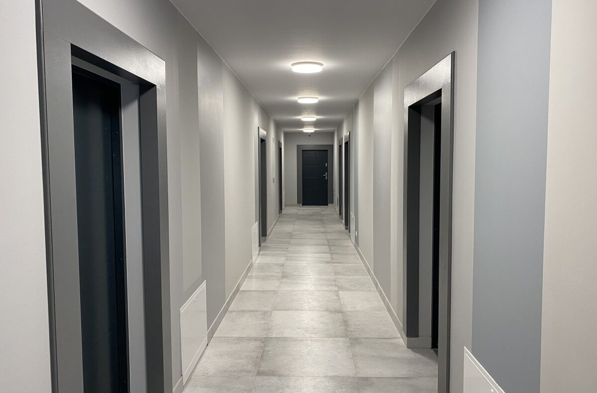Szerokie korytarze: Ciągi komunikacyjne spełniają wymogi dla obiektów użyteczności publicznej, umożliwiając swobodne poruszanie się na wózkach.