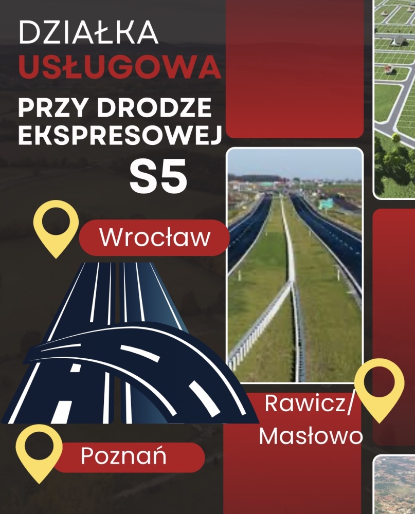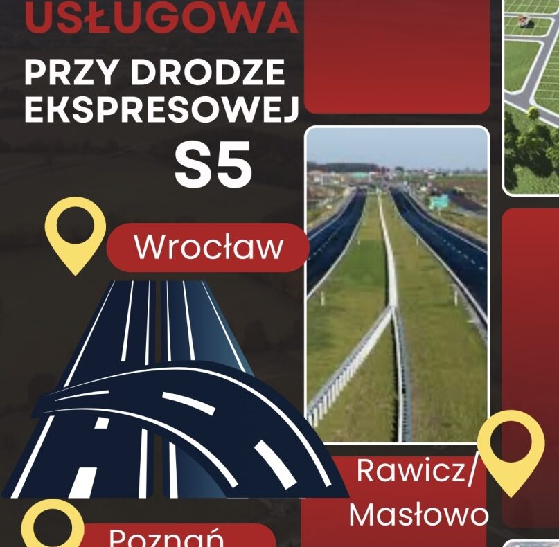Działka z bezpośrednią ekspozycją na drogę ekspresową S5 (Poznań–Wrocław) USŁUGOWA – MASŁOWO, GM. RAWICZ nr 29/126, obręb ewid. 0009 Masłowo, adres: ul. Śląska 48 A. Lokalizacja ta sprzyja działalności handlowej, usługowej, magazynowej, transportowej lub logistycznej. Na działce mieści się budynek o pow. ok. 750m2, powstał pod koniec lat 90, który miał być obiektem hotelowym. Pełnił funkcję biurowca. Budynek posiada ogrzewanie węglowe. Drugi budynek na działce posiada 200m2. Dojazd/komunikacja: najbliższy wjazd na S5 przez węzeł "Rawicz" na DK36 (obwodnica Rawicza), w odległości ok. 0,6–1,2 km od działki (w linii prostej kilkaset metrów). Lokalizacja zapewnia szybki wyjazd na S5 w kierunku Poznania i Wrocławia. Grunt o powierzchni 1,8783 ha. Otoczenie: strefa usług/produkcyjna wzdłuż DK36, zabudowa usługowa przy ul. Śląskiej. Zabudowania nadające się do adaptacji na biura, hotel lub inne usługi. Działka posiada status gruntu rolnego zabudowanego z przeznaczeniem pod usługi – bez możliwości zabudowy mieszkaniowej. Wcześniej na terenie nieruchomości funkcjonował hotel oraz budynek pełnił funkcję biurowca, co potwierdza potencjał inwestycyjny tego miejsca.