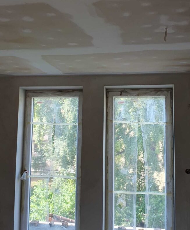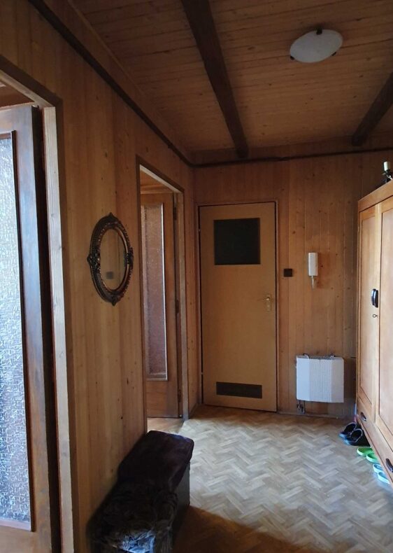 Pierwsze Piętro (Poziom 1) – 186 m² Kondygnacja z ogromnym potencjałem, wymagająca modernizacji. Doskonała pod podział na mniejsze jednostki mieszkalne. Posiada trzy balkony, salon z tarasem, dwie sypialnie i widną kuchnię.