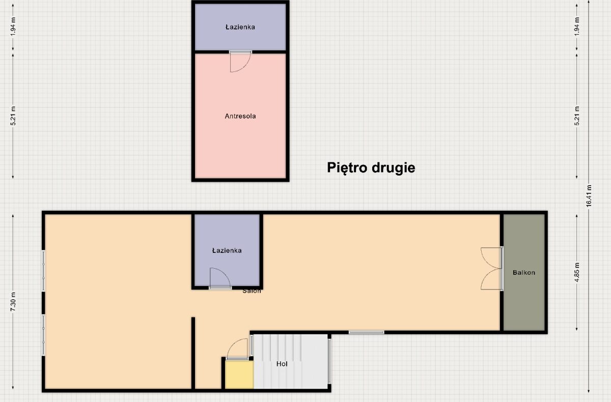 II Piętro: Możliwość adaptacji na 2 duże apartamenty premium (szacowany przychód: +6 000 zł netto/m-c).