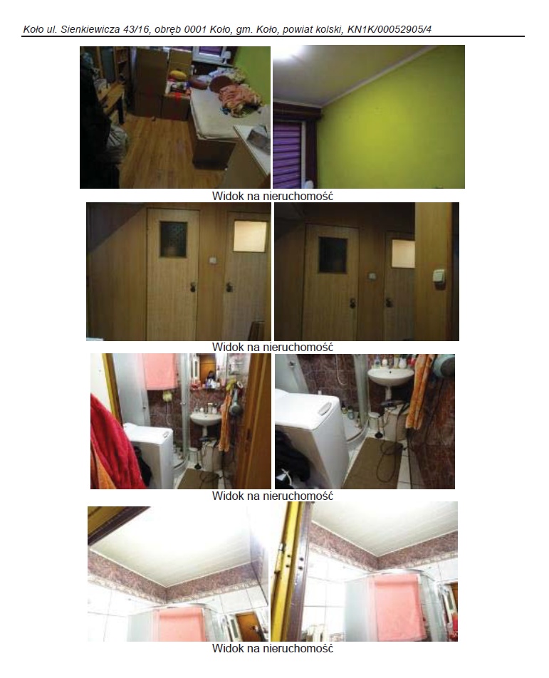 Konkurs na sprzedaż udziału w wysokości 1/2 w spółdzielczym własnościowym prawie do lokalu mieszkalnego nr 16 położonego w Kole przy ul. Sienkiewicza 43 o powierzchni użytkowej 39,01 m2 dla której Sąd Rejonowy w Kole, V Wydział Ksiąg Wieczystych prowadzi księgę wieczystą numer KN1K/00052905/4, cena wywoławcza 25.000,00 zł (słownie: dwadzieścia pięć tysięcy złotych 00/100).