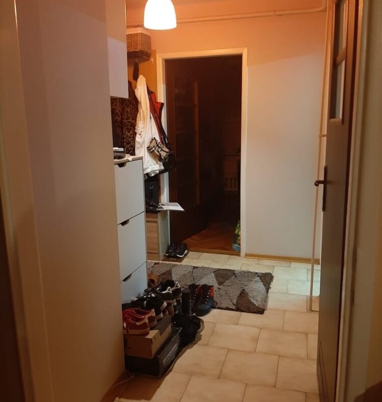 – korytarz z zabudowną szafą i komunikacją do 2 pokoi, kuchni