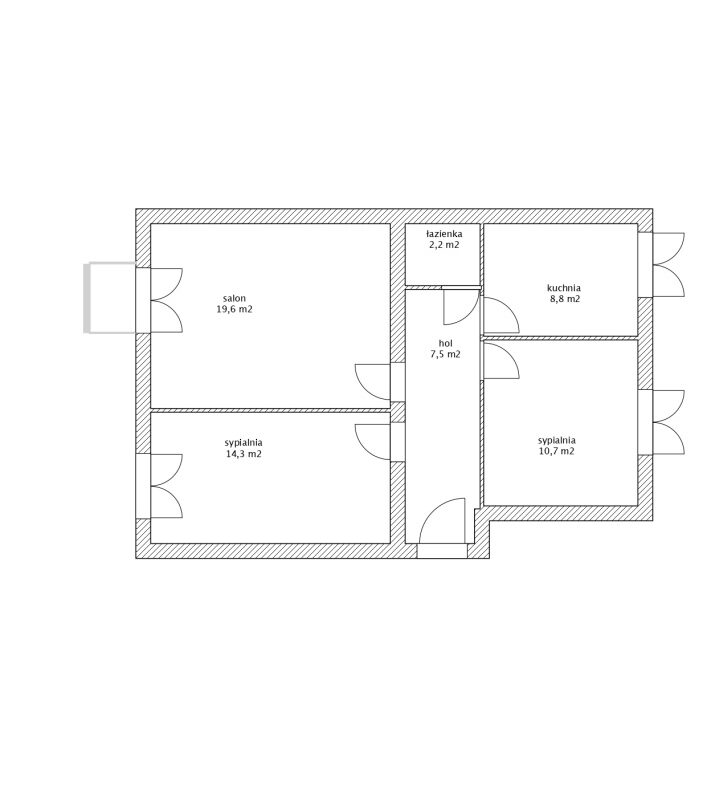 3 pokoje, oddzielna, duża kuchnia z oknem, łazienka i przedpokój z miejscem na duże szafy wnękowe oraz niewielki balkon.