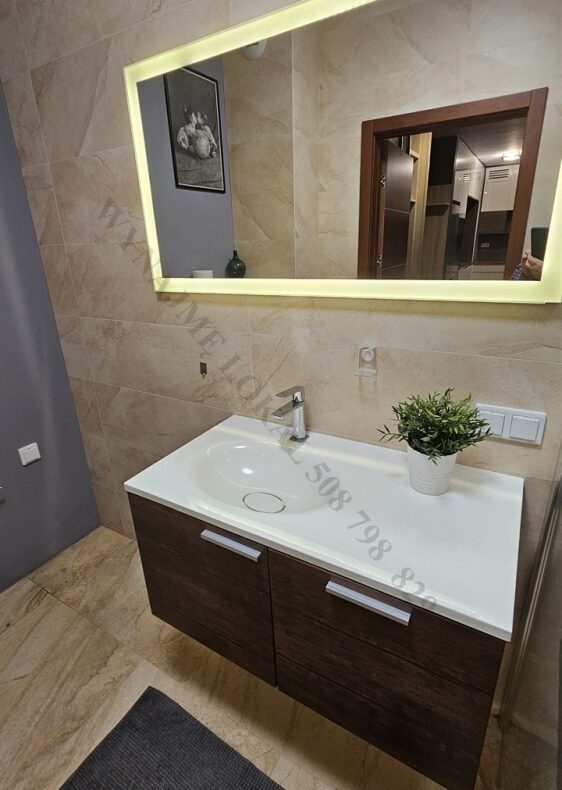 W mieszkaniu znajduje się kompletnie wyposażona kuchnia jest ona w aneksie do salonu, Zabudowa Kuchenna, Lodówka, Piekarnik, Płyta indukcyjna, Zamrażarka, Zlewozmywak, Zmywarka, Okap ), ładna nowoczesna duża łazienka i wygodne oddzielne 2 sypialnie. W przedpokoju i w sypialni znajdują się dwie pojemne szafy z drzwiami przesuwnymi. Wzornictwo i wykończenie było projektowane z przewagą ciepłych kolorów, dzięki czemu każdy powinien czuć się dobrze.