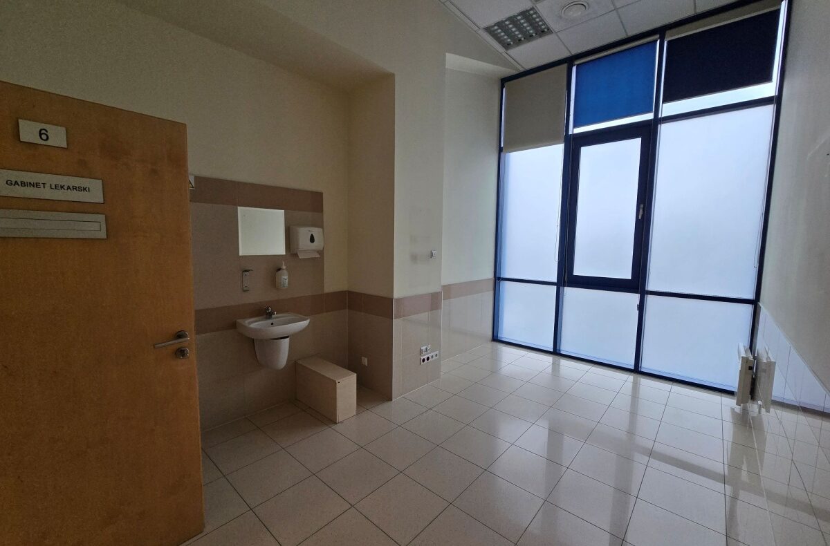 Do wynajęcia lokal usługowy o układzie gabinetowym i powierzchni 693,56 m2, zlokalizowany na I piętrze biurowca na ul. Wadowickiej 6. Lokal składa się z 34 pomieszczeń różnej wielkości oraz 8 toalet. Lokal posiada prywatną, dedykowaną sobie windę oraz recepcję. Wcześniej mieściła się w nim placówka medyczna, więc większość pomieszczeń jest wyposażona w umywalki z dostępem do bieżącej wody. Kilka pomieszczeń ma własne toalety.