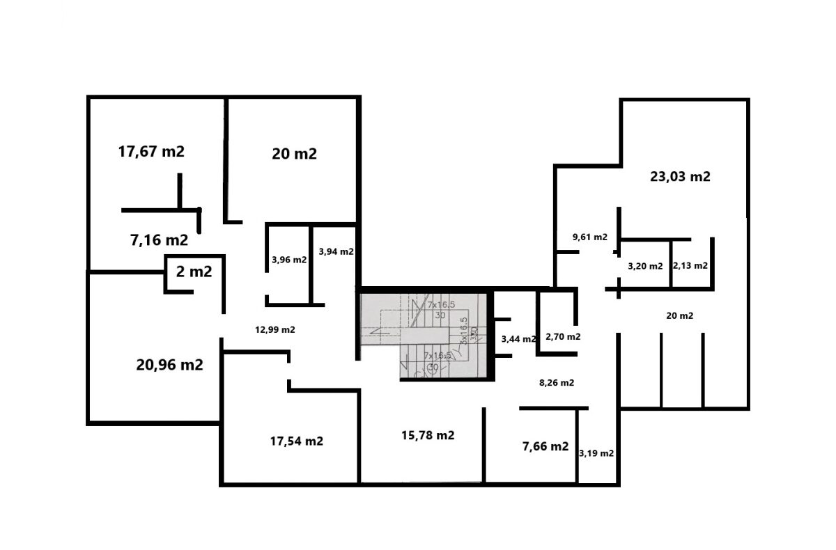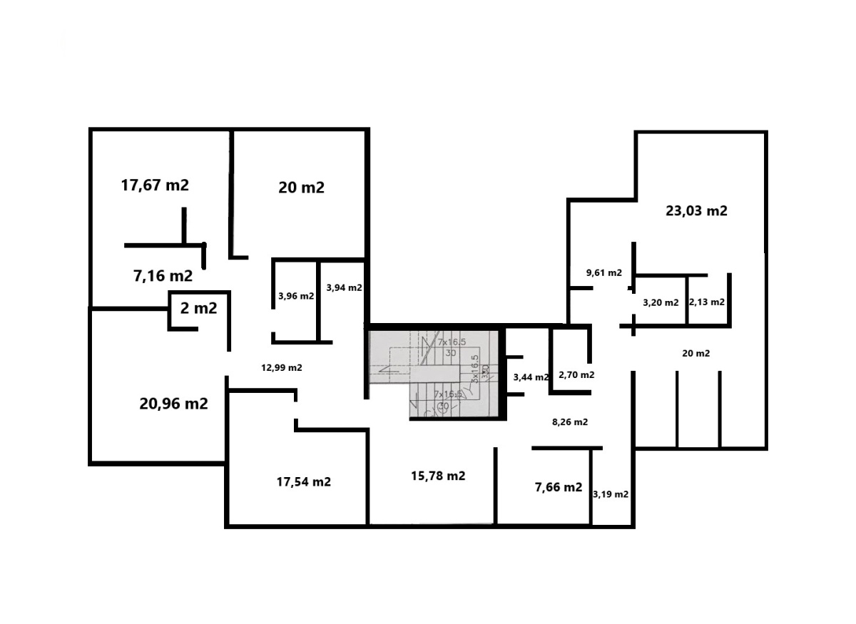 – sale o pow.: ok. 9,5 m2; 23 m2, 20 m2, 21 m2, 17,5 m2, 20 m2,