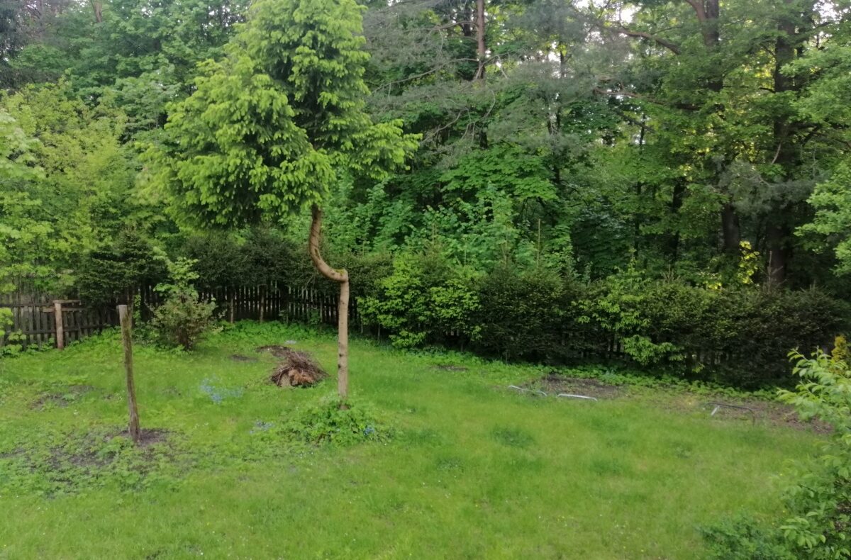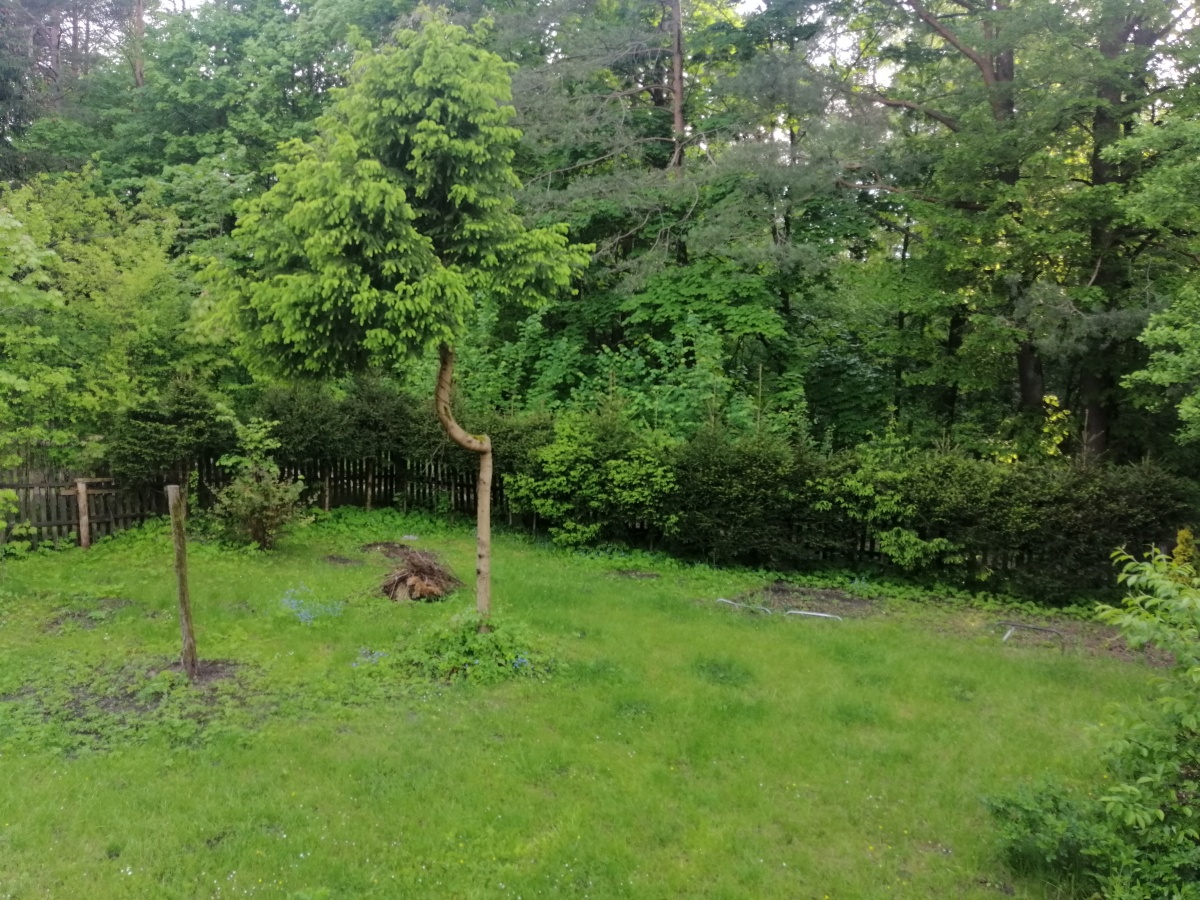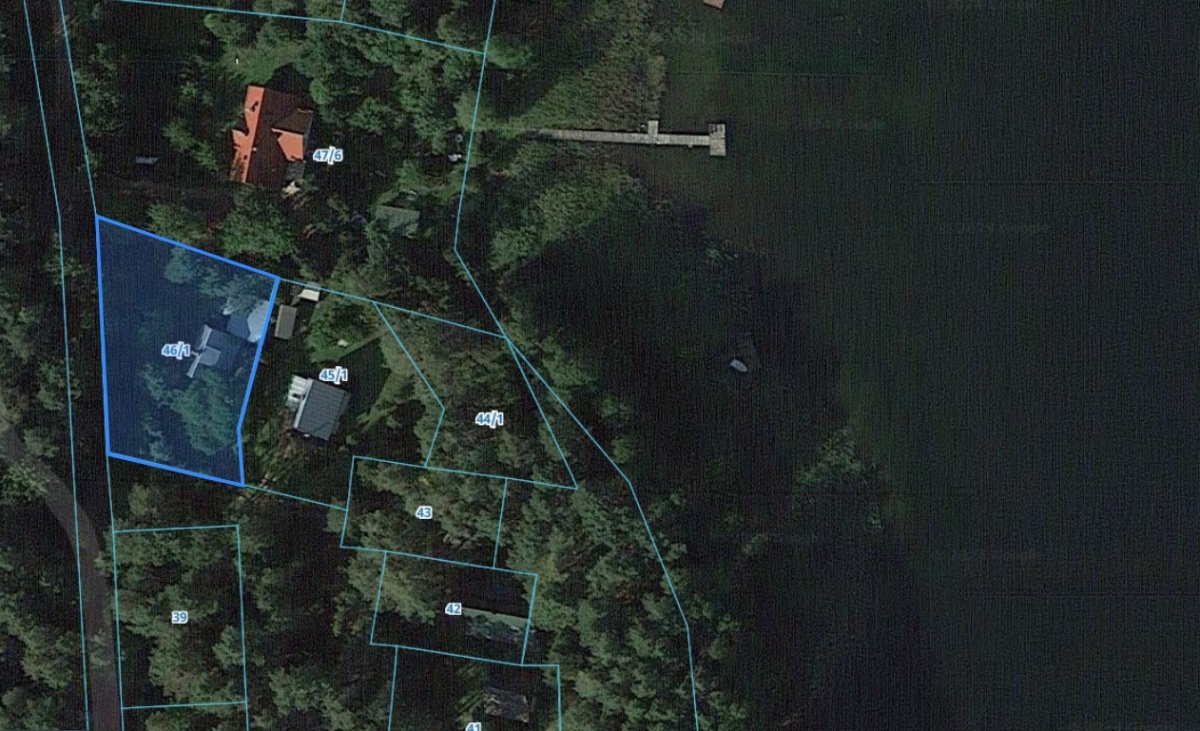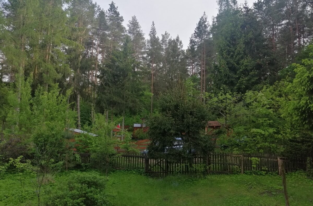 Działka 929m2 ok. 50m od jeziora, zagospodarowana, dużo roślin (jabłonie, winogrona itp.) wielki kasztan przy wjeździe.