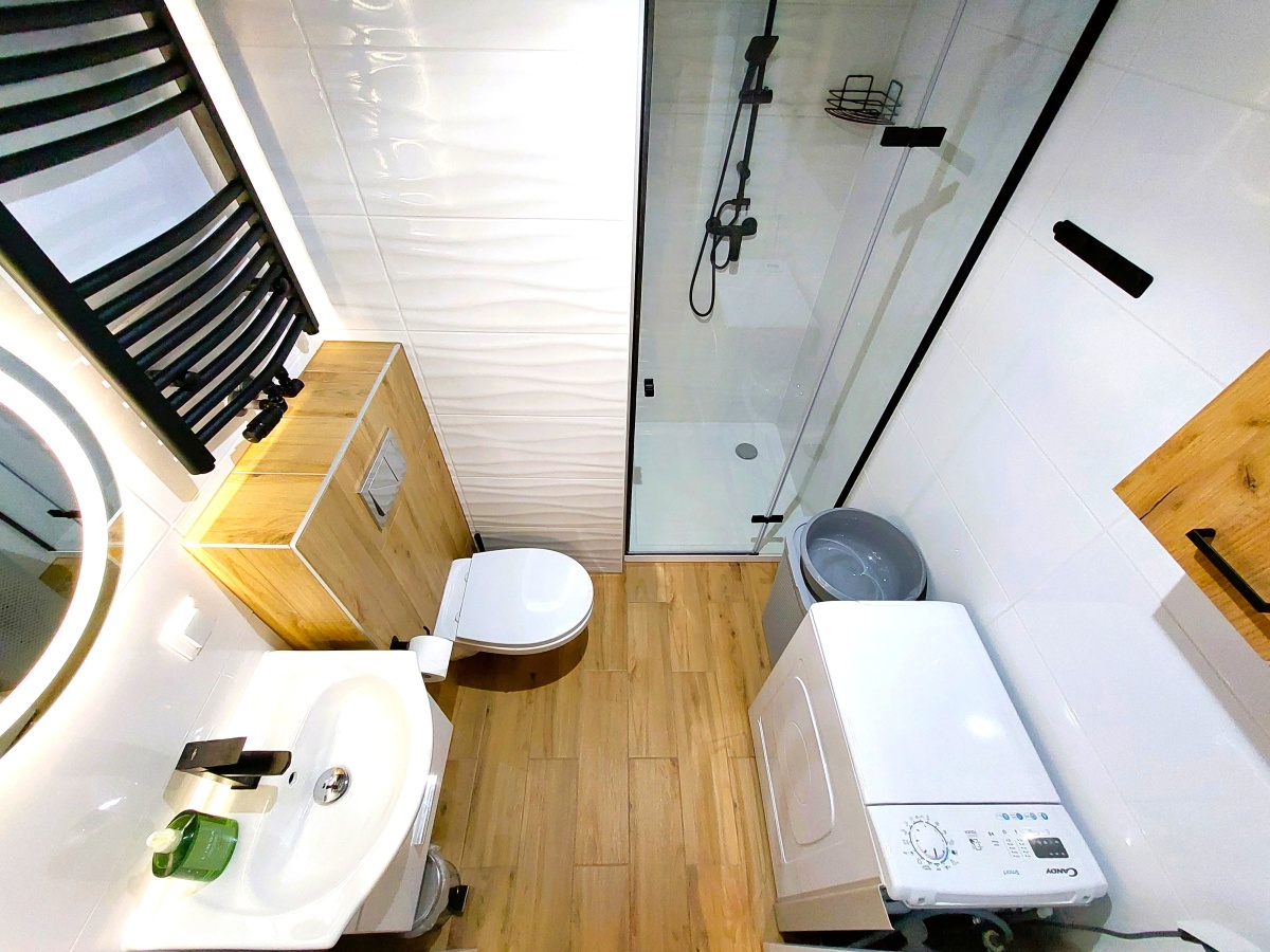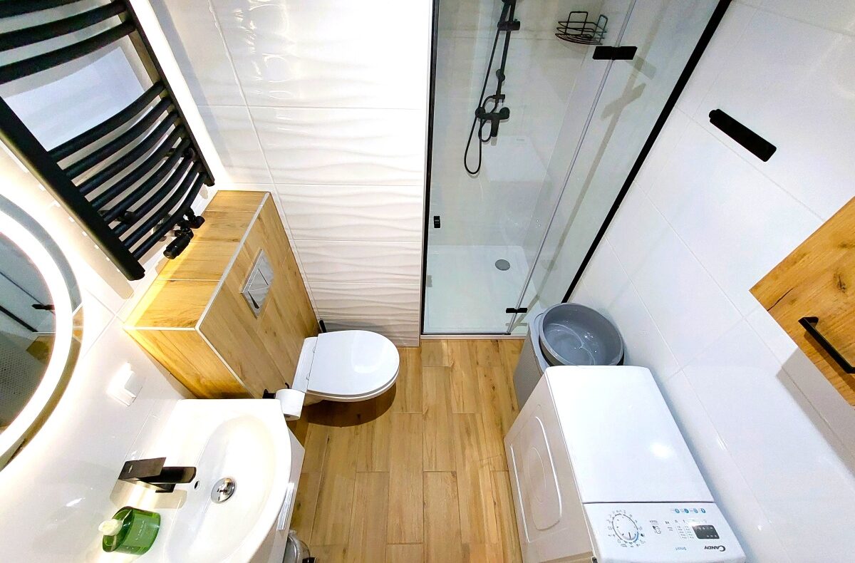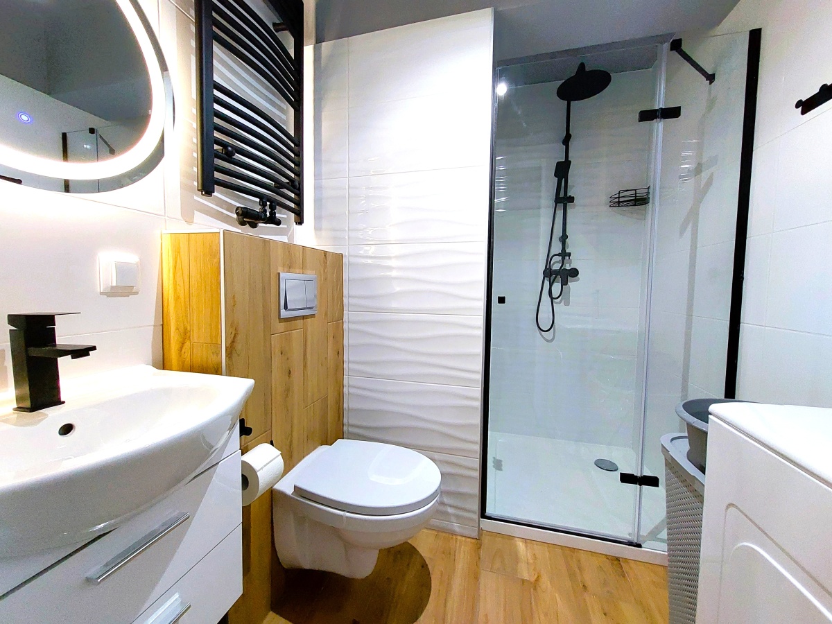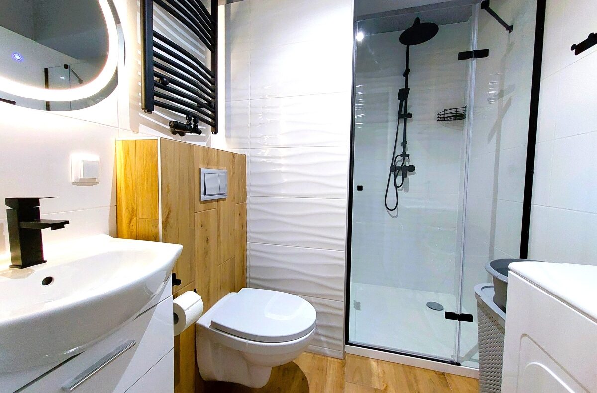 Łazienka z dużą kabiną prysznicową 90×90