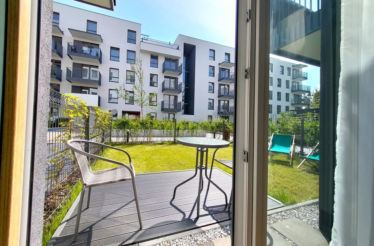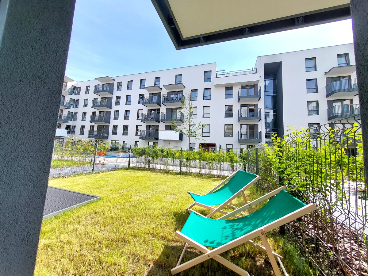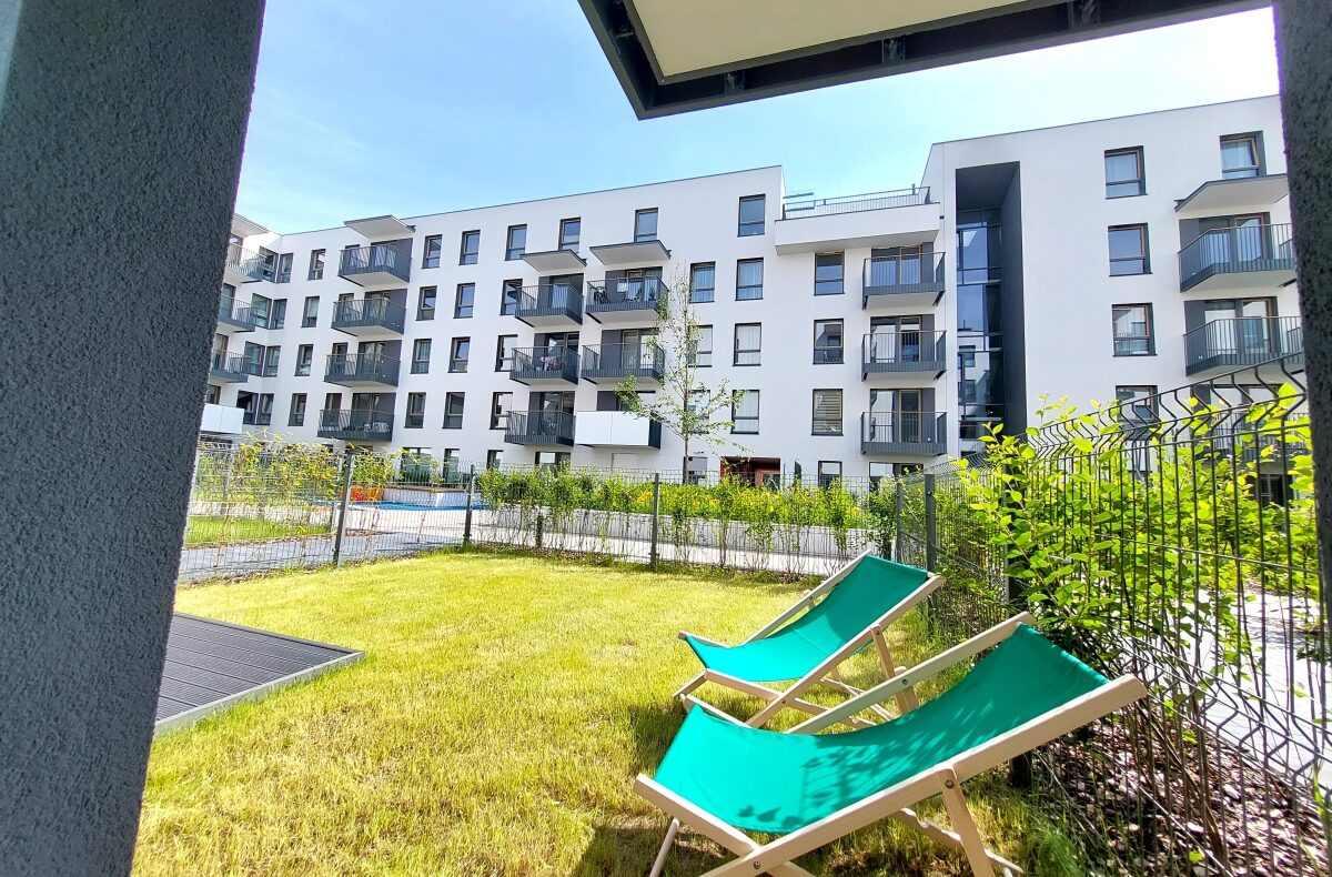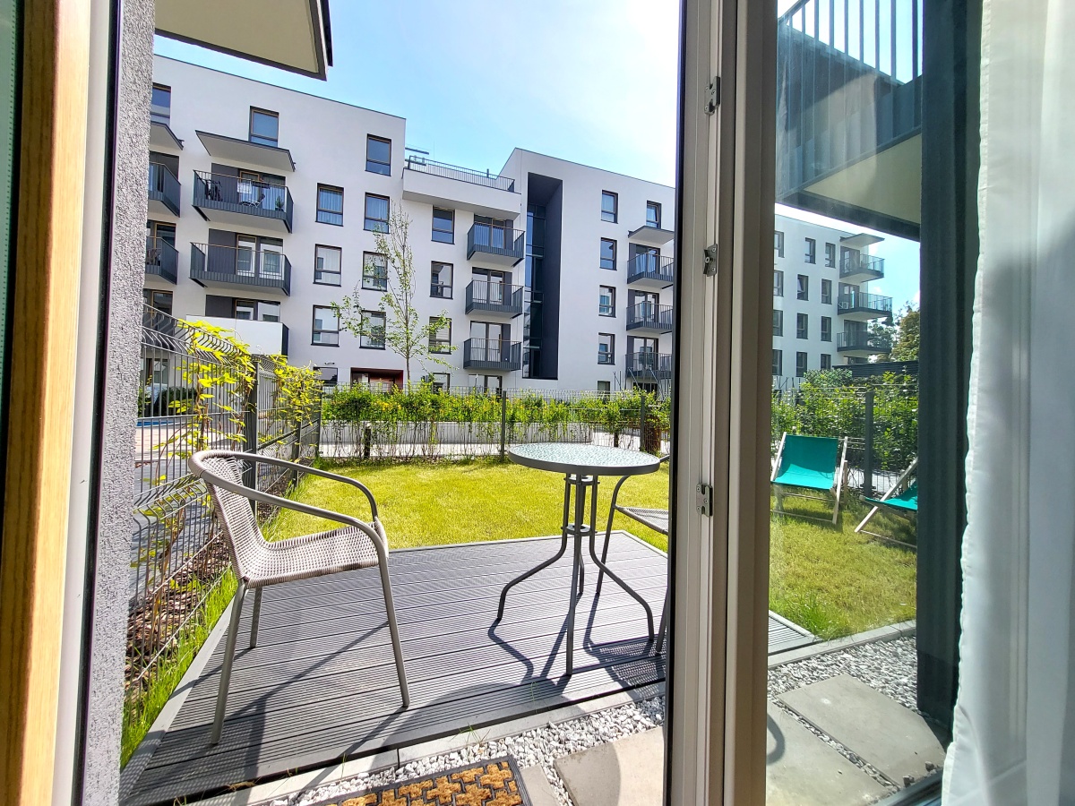 Do wynajęcia 2 pokoje z aneksem kuchennym, łazienką, garderobą i ogródkiem w mieszkaniu na parterze, na rogu ul. Toruńskiej i Łabiszyńskiej, osiedle Toruńska Vita.