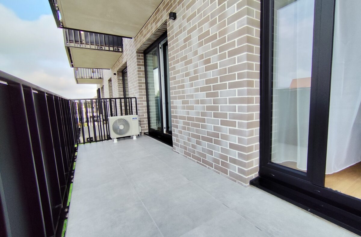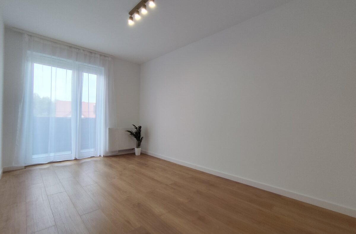 Duży balkon z wyjściem zarówno z salonu, jak i sypialni
