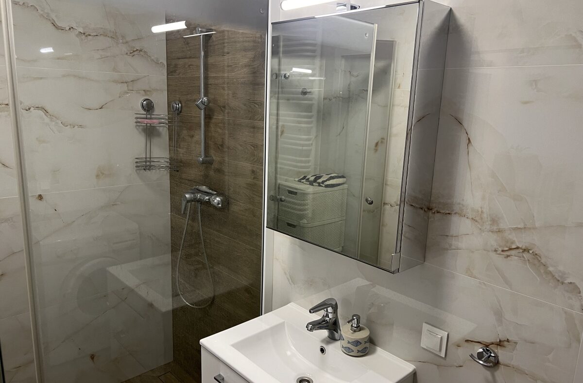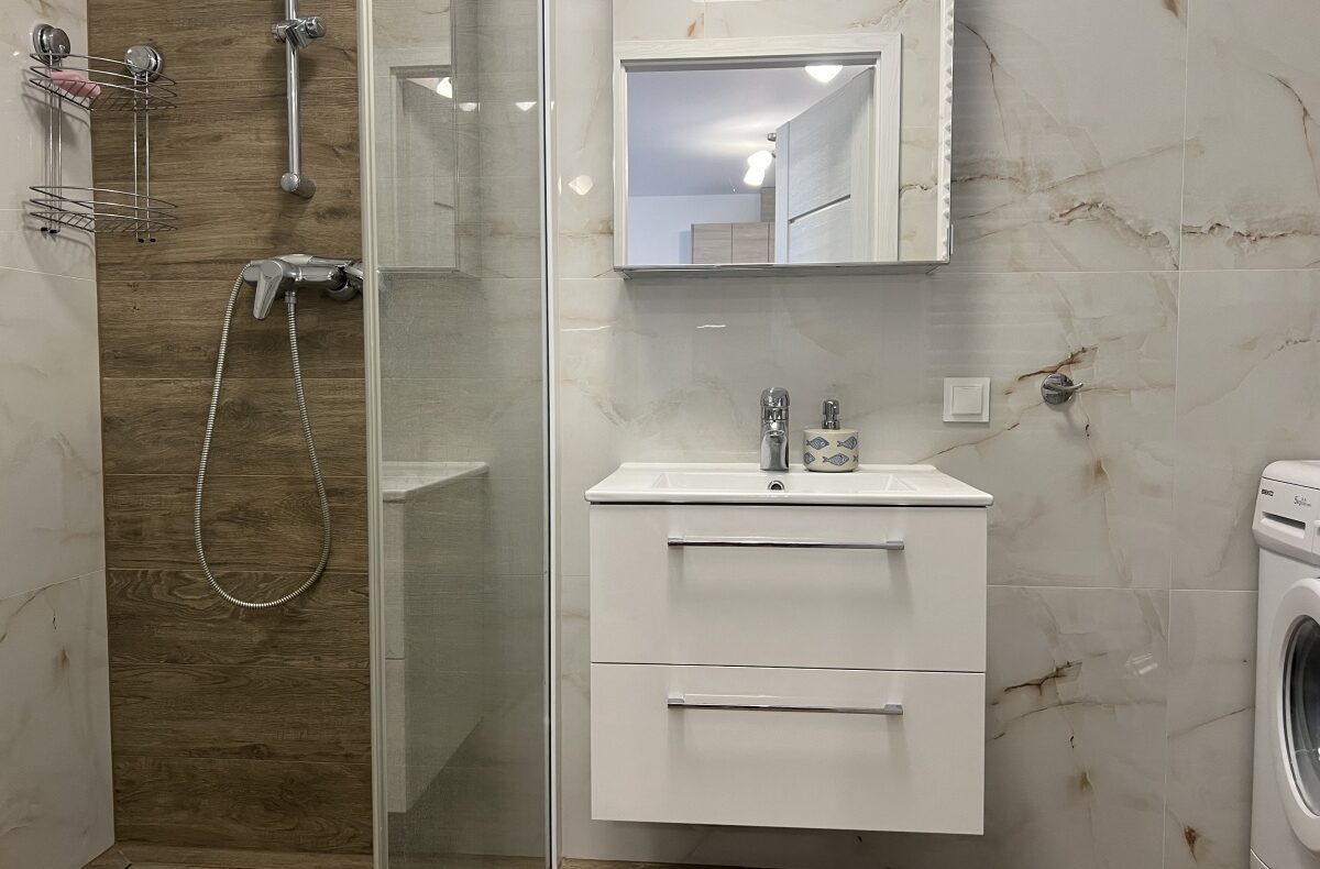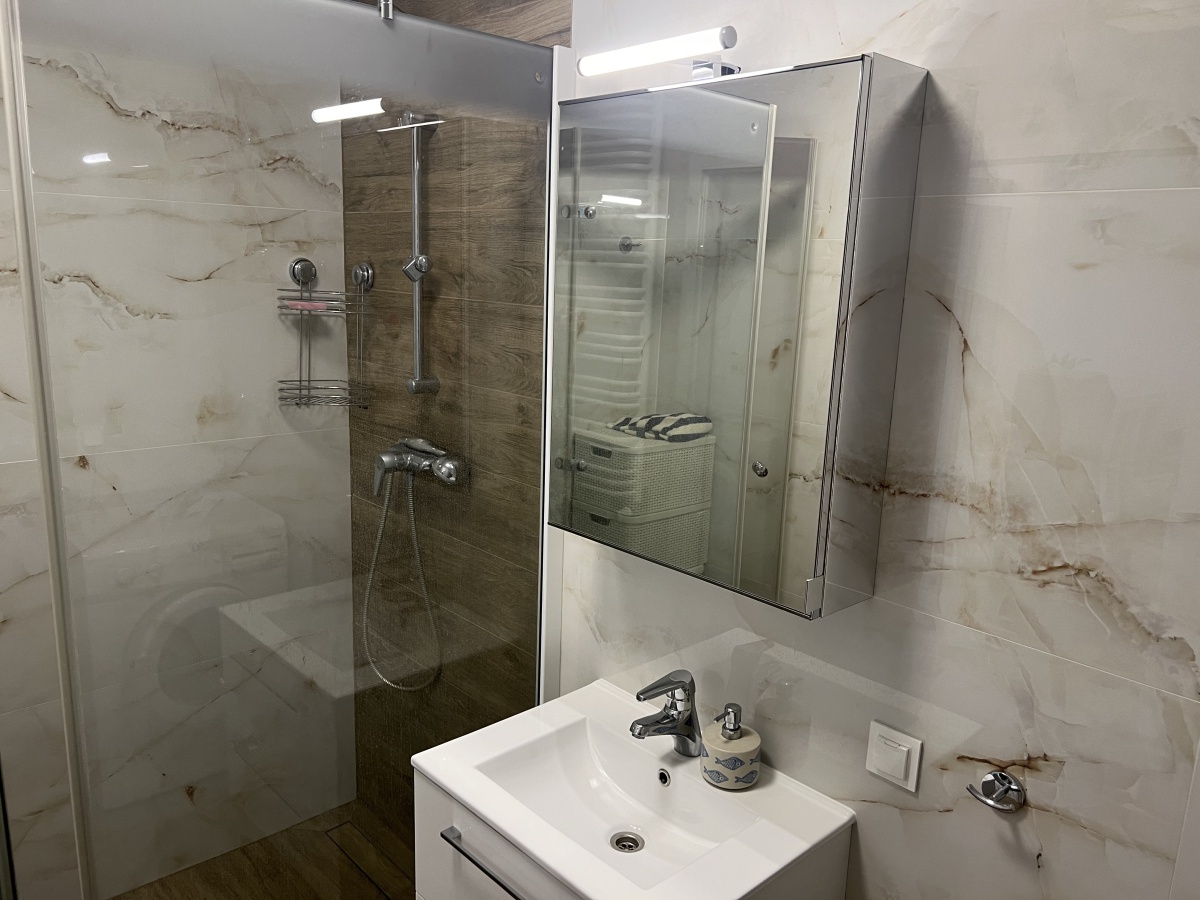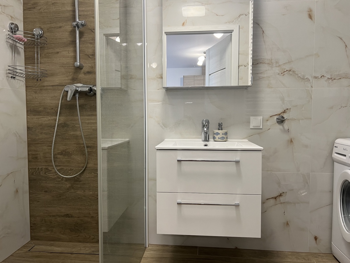 – łazienka z kabiną prysznicową.