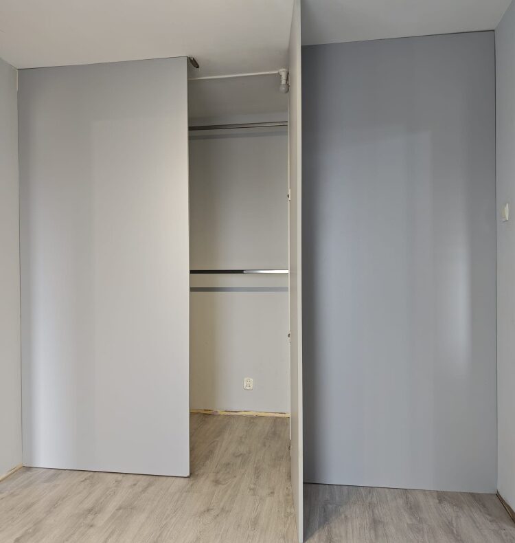 To dwa ustawne pokoje z oddzielną kuchnią. Całość jest jasna i bardzo przytulna. Dużym atutem jest osobna garderoba w sypialni. Nie jest to typowe „mieszkanie na betonie” – okolica jest zielona i naprawdę cicha.