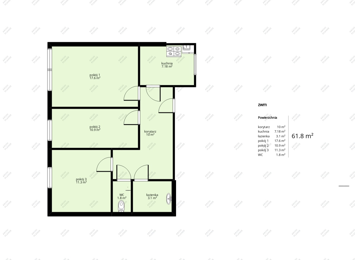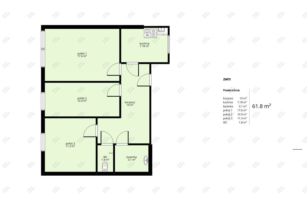 Mieszkanie posiada bardzo funkcjonalny, rozkładowy układ – osobna kuchnia z oknem, niezależne wejścia do wszystkich pomieszczeń.