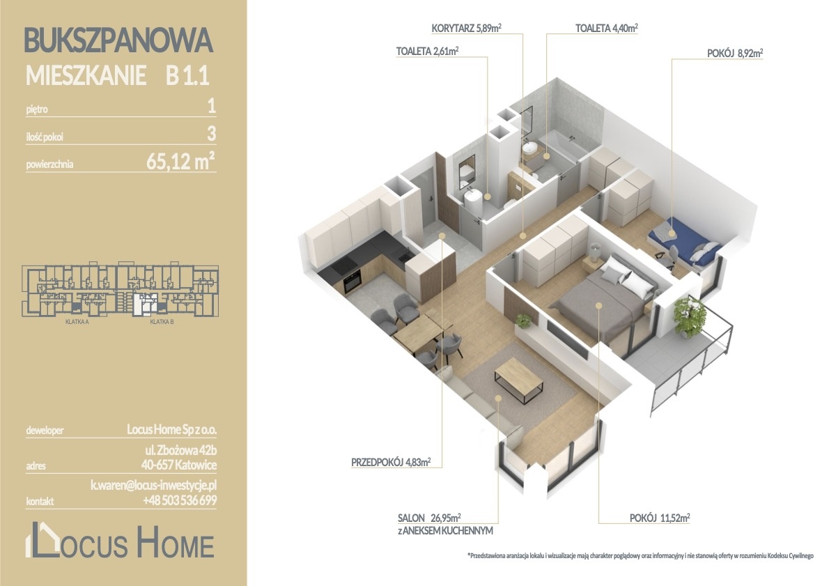 Spółka LOCUS HOME to DEWELOPER który realizuje inwestycje mieszkaniowe na terenie Katowic od wielu lat. NOWA inwestycja na ulicy BUKSZPANOWEJ (obok nr 19) w Piotrowicach to nowoczesny apartamentowiec w doskonałej lokalizacji Katowic.