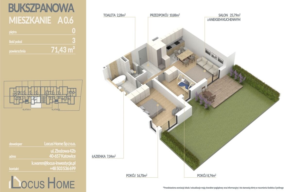 Spółka LOCUS HOME to DEWELOPER który realizuje inwestycje mieszkaniowe na terenie Katowic od wielu lat. NOWA inwestycja na ulicy BUKSZPANOWEJ (obok nr 19) w Piotrowicach to nowoczesny apartamentowiec w doskonałej lokalizacji Katowic.