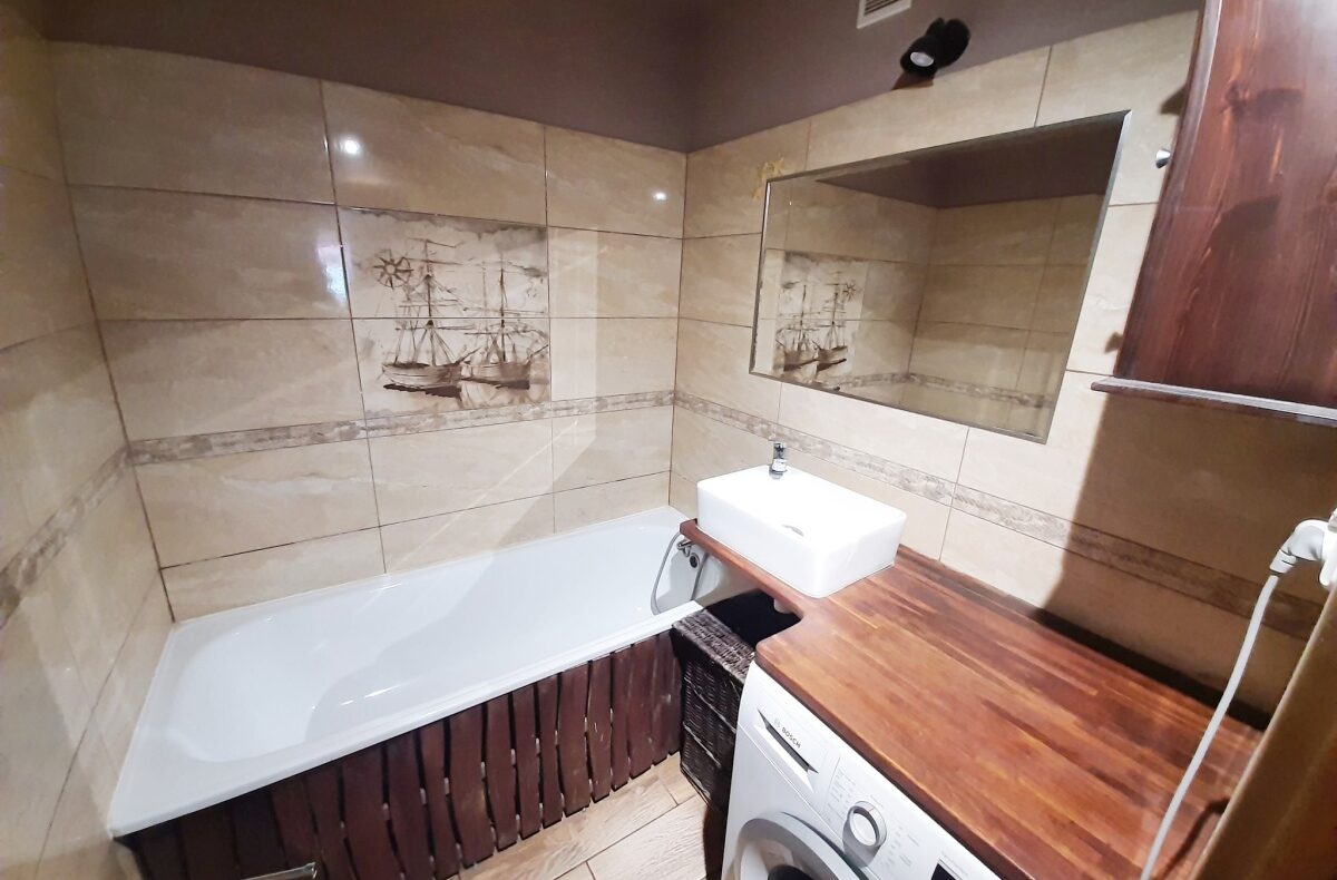 mieszkanie 5 lat temu przeszło gruntowny remont (w tym wymiana całej instalacji elektrycznej na miedzianą, wymienione piony wodno kanalizacyjne, gładzione ściany i sufity, na ścianach zmywalna farba. W dużym pokoju, na korytarzu oraz w kuchni położone są panele klasy ac6, w łazience pod wanna nieopomiarowany grzejnik), okna od strony południowo zachodniej więc jest ciepłe i słoneczne. Blok jest po termomodernizacji a klatki schodowe obszerne, czyste i wyremontowane.