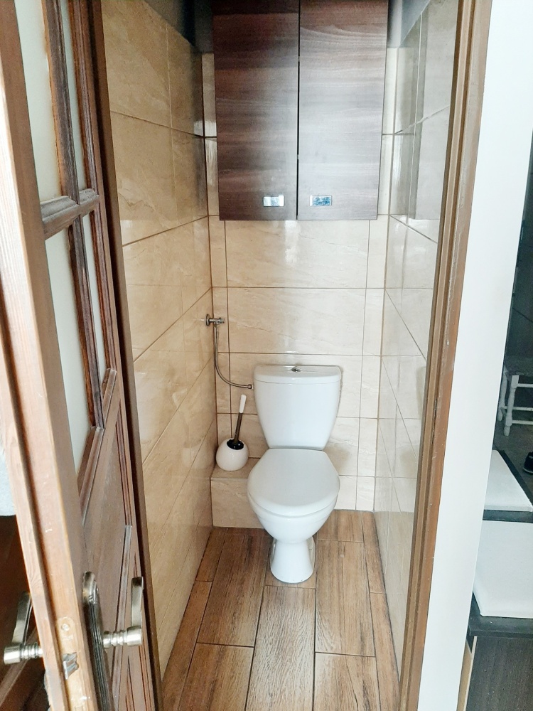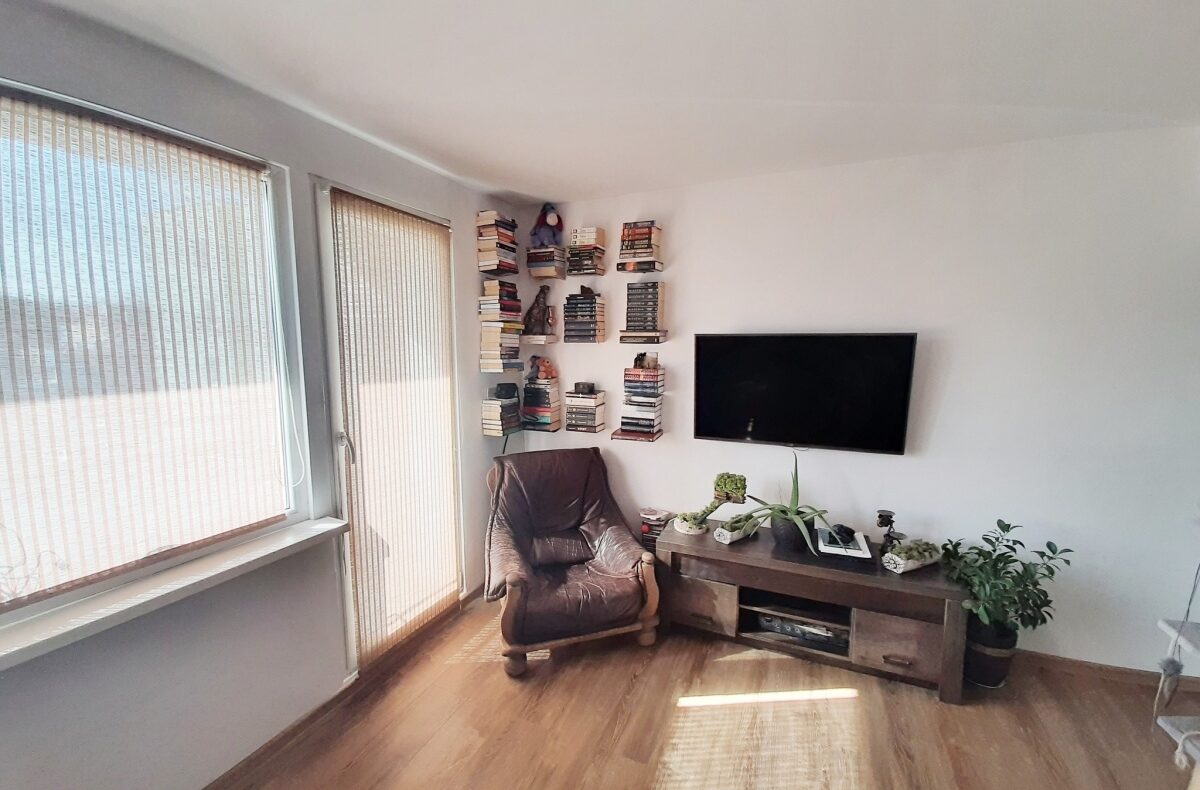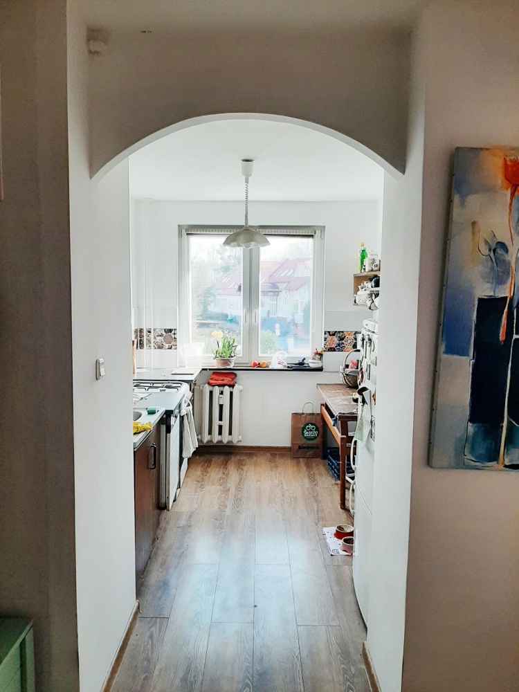 Mieszkanie o powierzchni 51,70 znajduje się na 3 piętrze niskiego bloku, składa się z 3 pokoi, oddzielnej kuchni, przestronnego korytarza, łazienki, oddzielnej toalety, do mieszkania należy również wydzierżawiona część klatki schodowej o powierzchni 3m2, gdzie znajduje się duża szafa oraz szafka na buty, duży balkon. Do mieszkania należą również dwie piwnice, dostęp do wózkowni oraz suszarni.