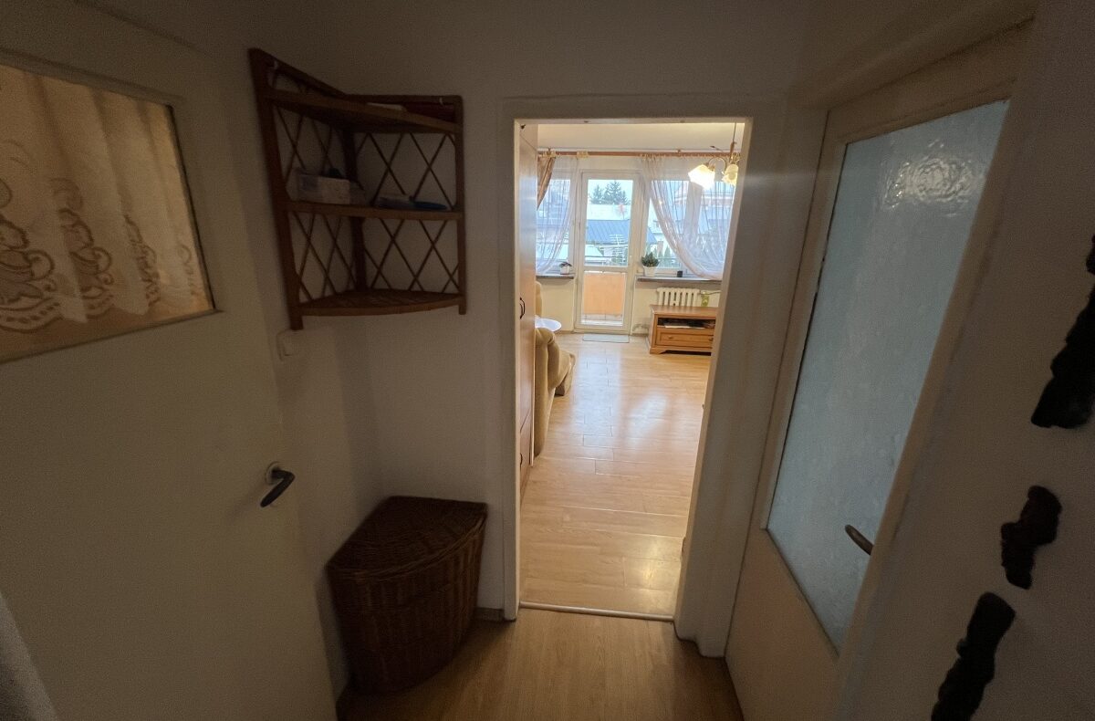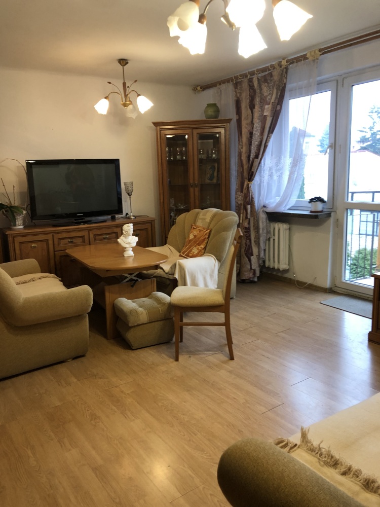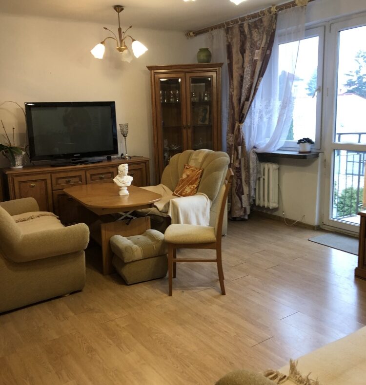 Mieszkanie położone jest blisko centrum miasta oraz instytucji publicznych (urząd miasta, starostwo, dom kultury). Innym atutem jest przestronny i ustawny salon oraz położenie na pierwszym piętrze. Mieszkanie wymaga odświeżenia. Stan prawny – lokal na własność z księgą wieczystą. Stałe opłaty na rzecz wspólnoty mieszkaniowej.