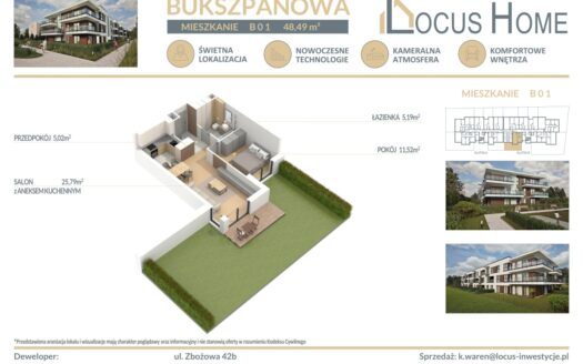Dużym atutem mieszkania jest jego lokalizacja w bezpośrednim otoczeniu centrum Katowic, w sąsiedztwie Parku Kościuszki. Do centrum Katowic dojazd autobusem (trzy przystanki do dworca PKP, bardzo dobra komunikacja) lub dwudziestominutowy spacer przez Park Kościuszki.