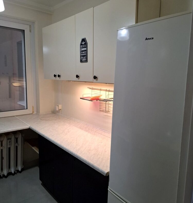 • kuchnię – jest zaopatrzona w niezbędne sprzęty – zlew dwukomorowy, kuchenka gazowa z piekarnikiem, duża lodówka. Jest sporo miejsca do przechowywania i dużo przestrzeni, gdzie można przygotowywać posiłki.
