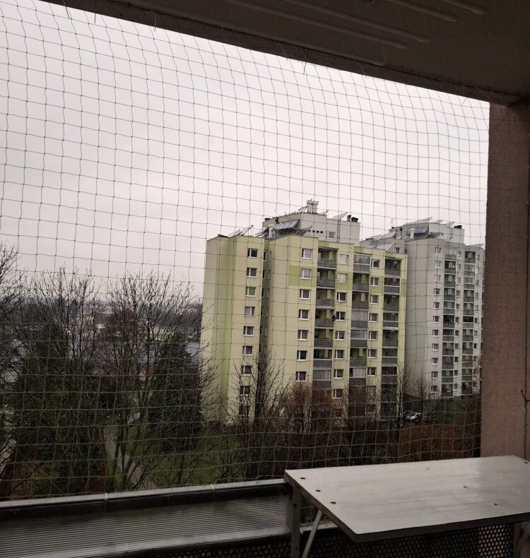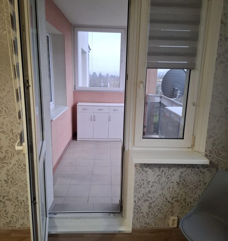• duży balkon zabezpieczony siatką – na balkonie są szafki do przechowywania
