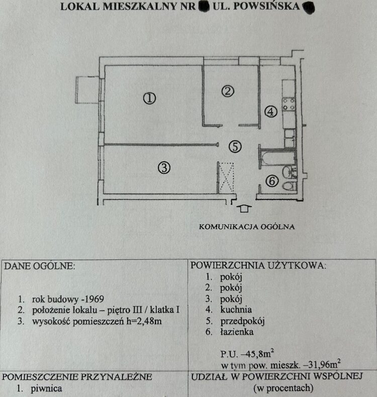 Atrakcyjne mieszkanie na warszawskiej Sadybie, przy skrzyżowaniu ul. Powsińskiej i ul. Limanowskiego, w bliskiej odległości do Jeziorka Czerniakowskiego i centrum handlowego Sadyba Best Mall. Lokal składa się z 3 pokoi, osobnej, widnej kuchni, przedpokoju i łazienki z WC. Mieszkanie ma 45,8 m2, jest rozkładowe, narożne i bardzo widne. Znajduje się na 3 piętrze, w 4-piętrowym budynku bez windy. Stan mieszkania dobry/średni, do odświeżenia lub remontu. Media miejskie, kuchnia gazowa. Mieszkanie w bardzo dogodnym punkcie komunikacyjnym. Tuż obok jest przystanek autobusowy, szkoła podstawowa, gimnazjum, przedszkole i żłobek. Wokół sporo zieleni, sklepów, punktów handlowo-usługowych oraz centrum handlowe Sadyba Best Mall. Cena 670.000 zł. Zapraszam do oglądania: KRZYSZTOF LIPSKI tel. 601 29 47 33