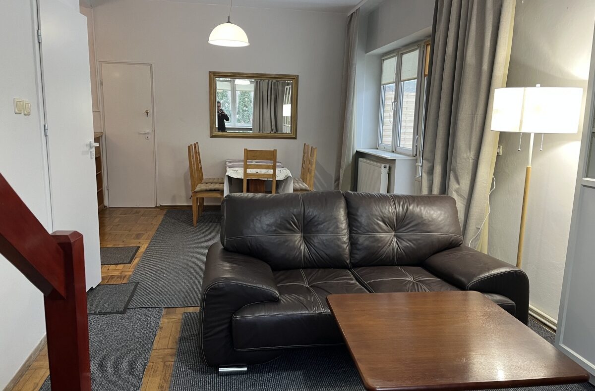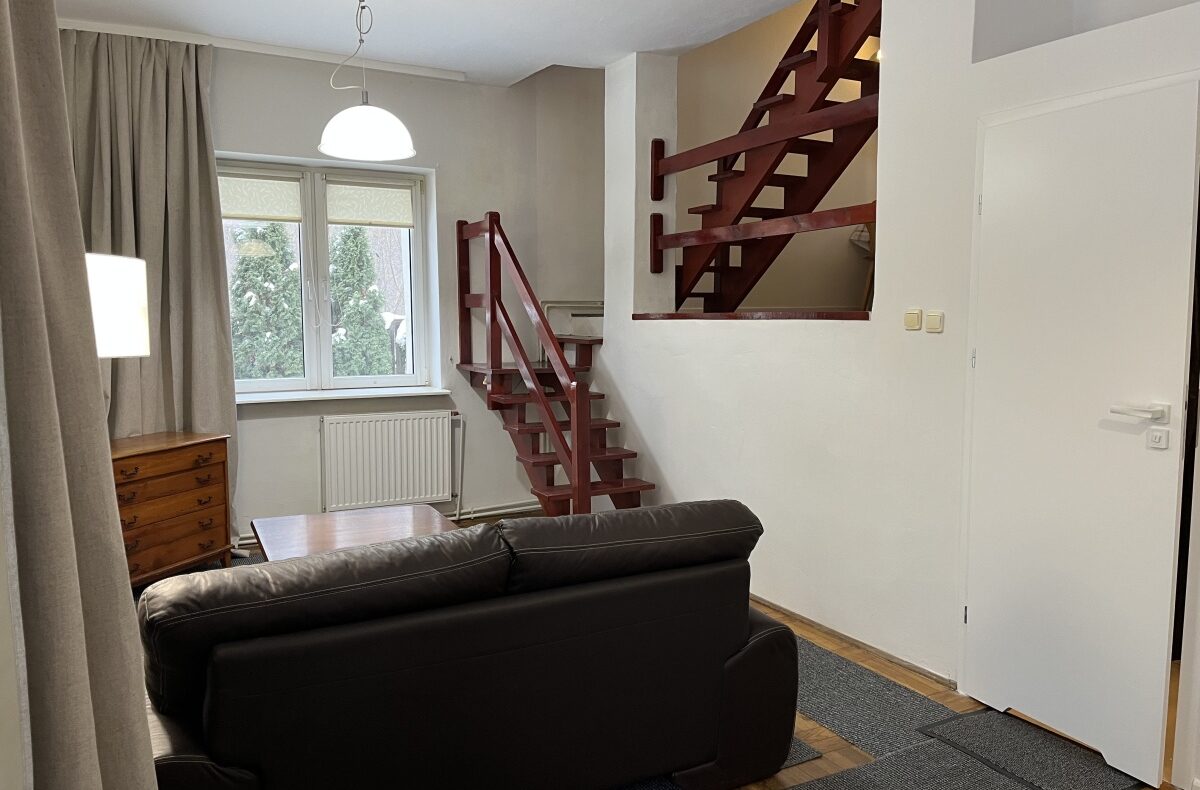 Mieszkanie typu studio , osobne wejście, osobne licznik elektryczny w domu dwulokalowym do wynajęcia od zaraz. Mieszkanie o powierzchni 70 m.kw jest położone na trzech poziomach i ma przestrzeń otwartą, schody wewnętrzne – widoczne na zdjęciach, wysokość mieszkania wynosi 3,5 metra! Na parterze mieści się kuchnia otwarta na salon, osobne wc i łazienka oraz wyjście na taras o pow. 14 m.kw. Dwie pozostałe pomieszczenia mają po 13 – 16m. kw. są zlokalizowane na wyższych poziomach. Na podłodze drewniana klepka i wykładziny dywanowe. Dzięki grubym murom z cegły w mieszkaniu panuje doskonały klimat i nawet w wielkie upały jest chłód bez potrzeby klimatyzacji.