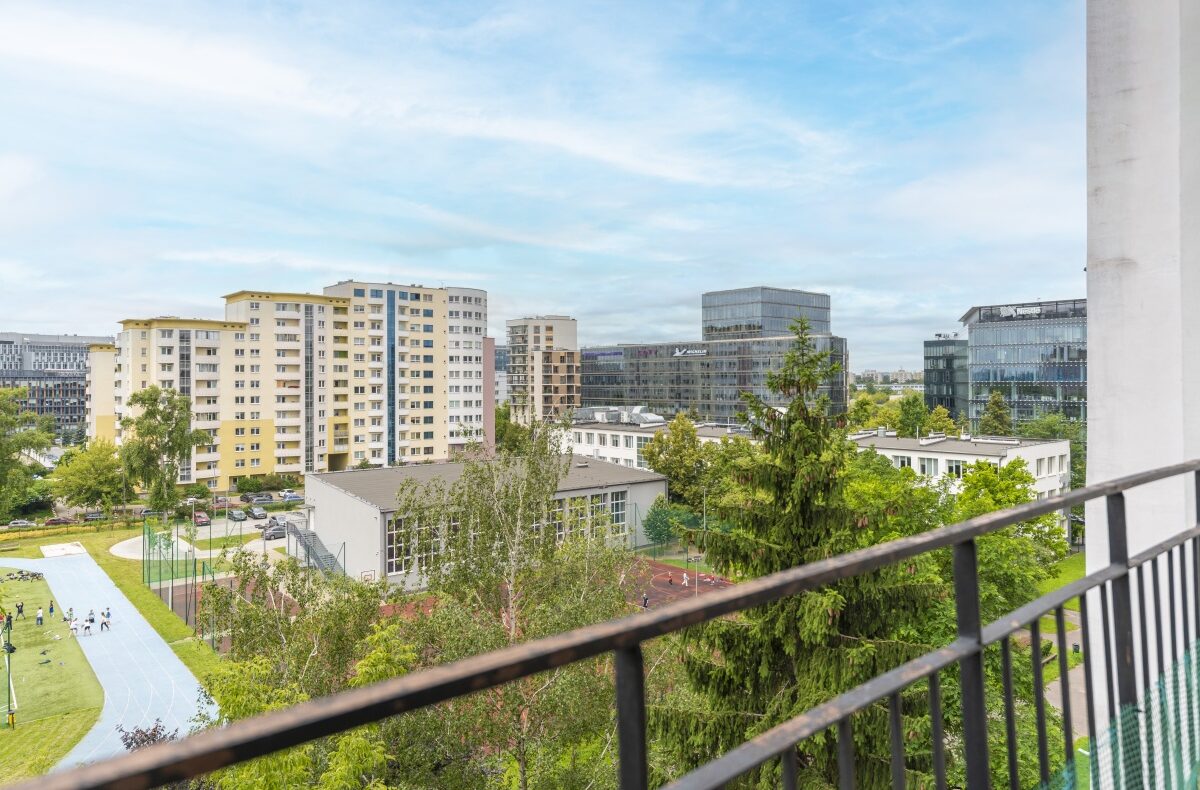 Trzypokojowe mieszkanie, przestronne, jasne, idealne zarówno do rodzinnych zabaw (widok na szk. podst. nr 146), jak i spokojnych wieczorów przy kolacji w przestronnym salonie z ekspozycją na zachód słońca.