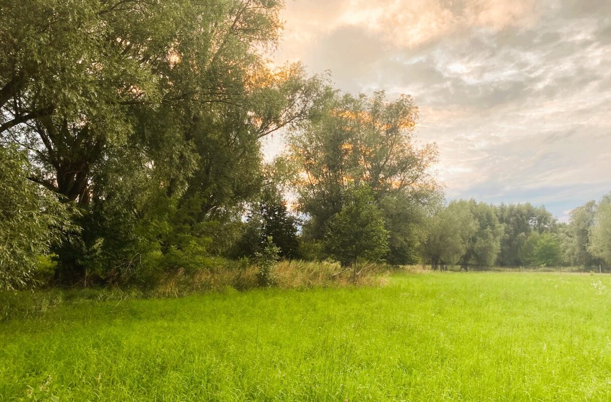 Nieruchomość znajduje się w cichej, spokojnej okolicy, w sąsiedztwie nowo wybudowanych domów oraz pól i łąk. Na horyzoncie widoczny wał przeciwpowodziowy rzeki Wisły.