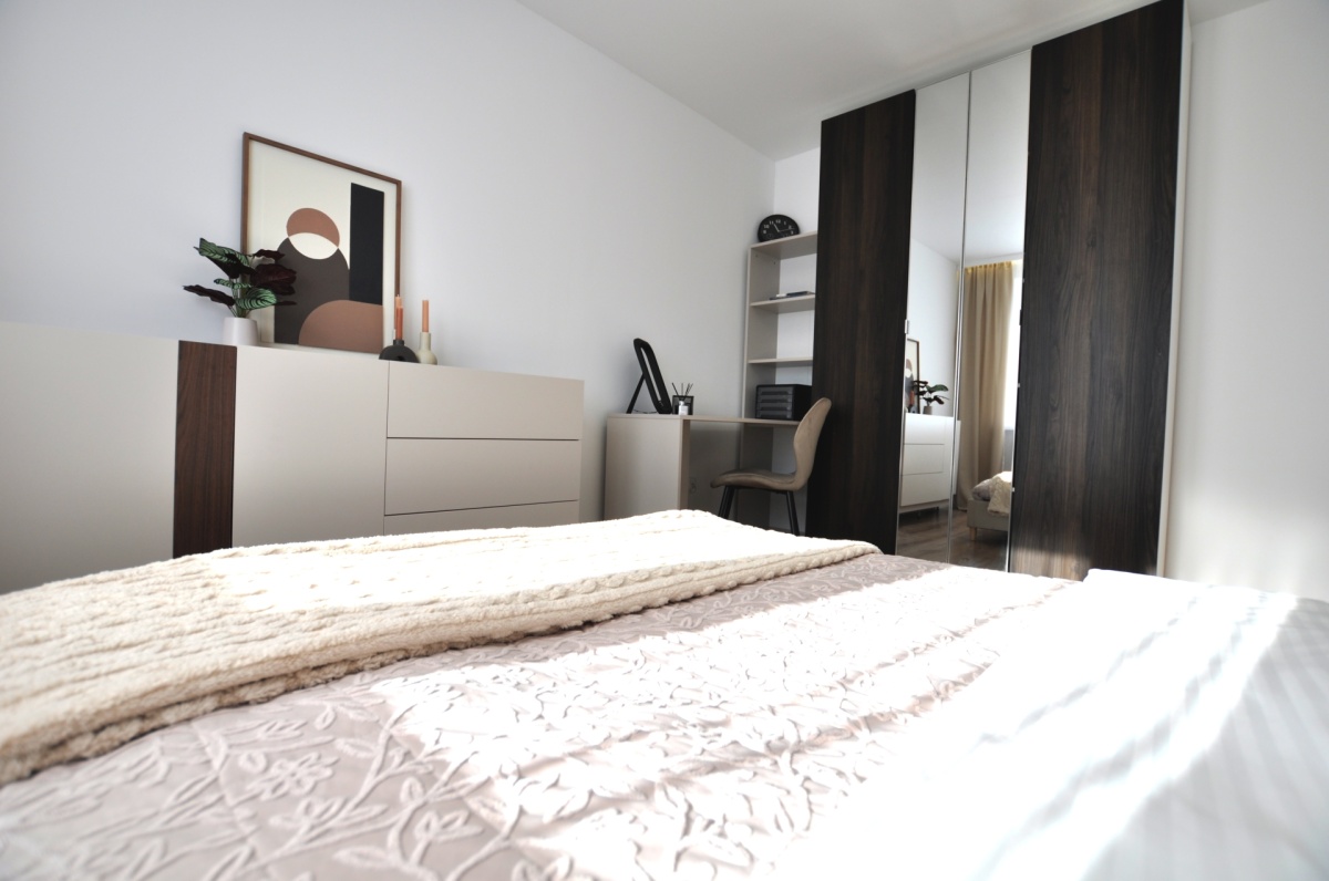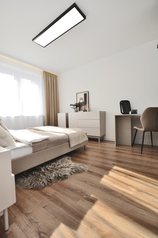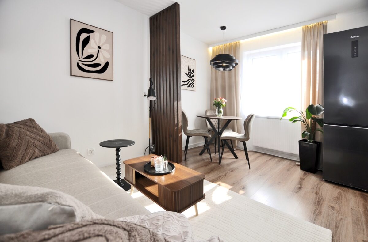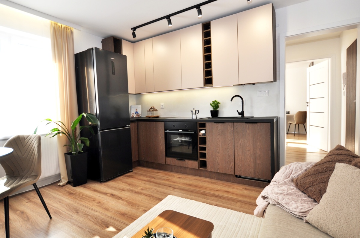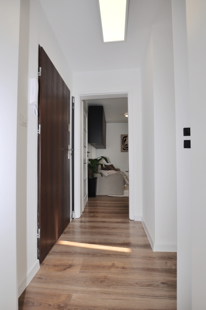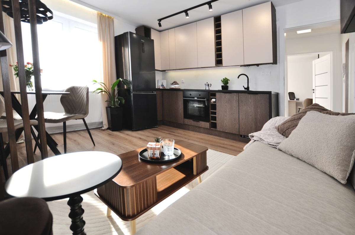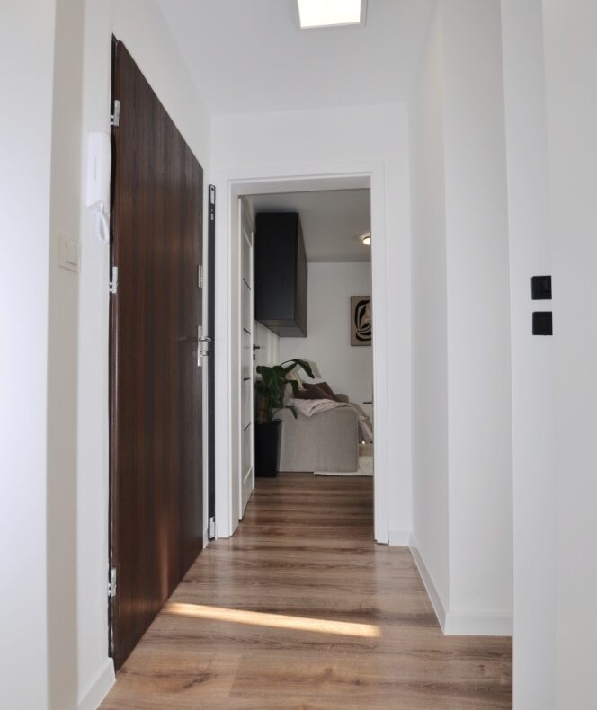 Dużym atutem jest również sam standard przygotowania mieszkania. Układ instalacji został zaprojektowany przez architekta, wnętrze dopracowała projektantka, a końcowy efekt został przygotowany z dbałością o estetykę i spójność całej przestrzeni. Dzięki temu mieszkanie prezentuje się bardzo nowocześnie, elegancko i ponadprzeciętnie dobrze — co widać od pierwszego wejścia.