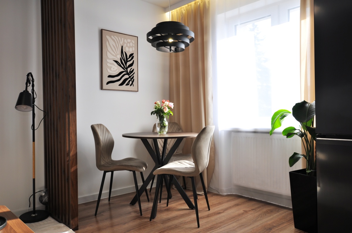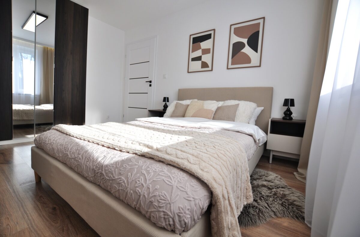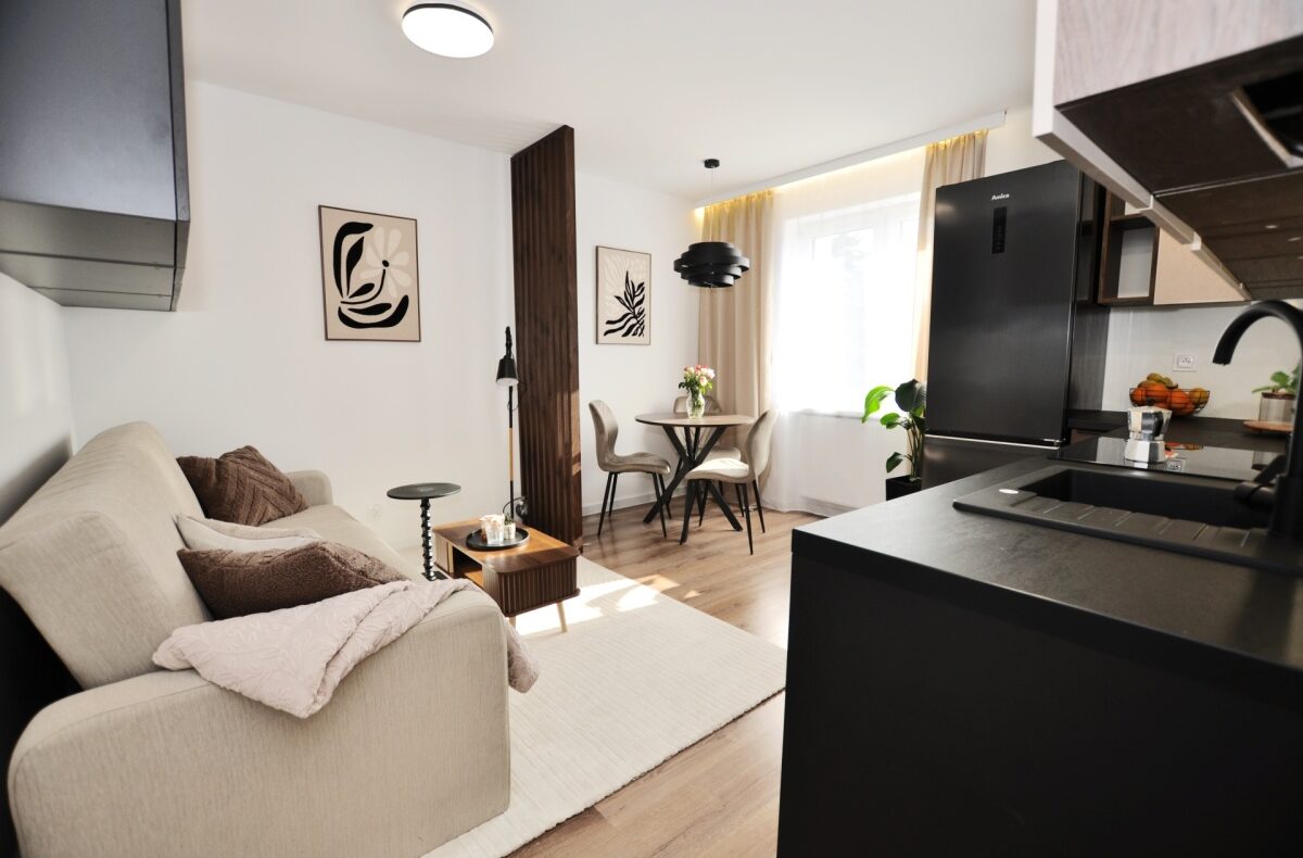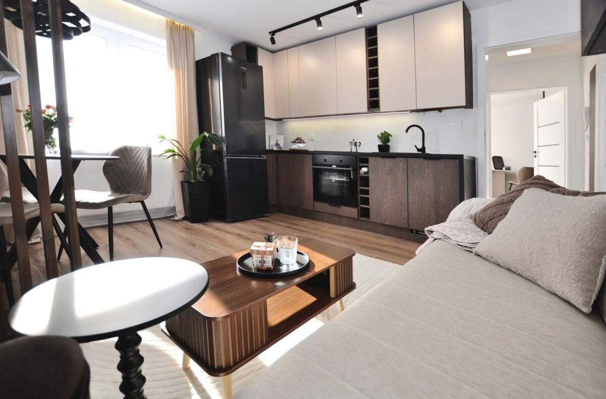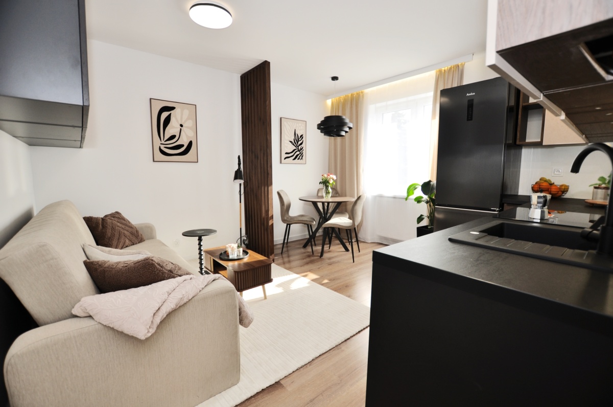 Dużym atutem jest również sam standard przygotowania mieszkania. Układ instalacji został zaprojektowany przez architekta, wnętrze dopracowała projektantka, a końcowy efekt został przygotowany z dbałością o estetykę i spójność całej przestrzeni. Dzięki temu mieszkanie prezentuje się bardzo nowocześnie, elegancko i ponadprzeciętnie dobrze — co widać od pierwszego wejścia.