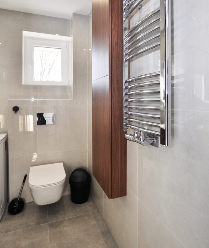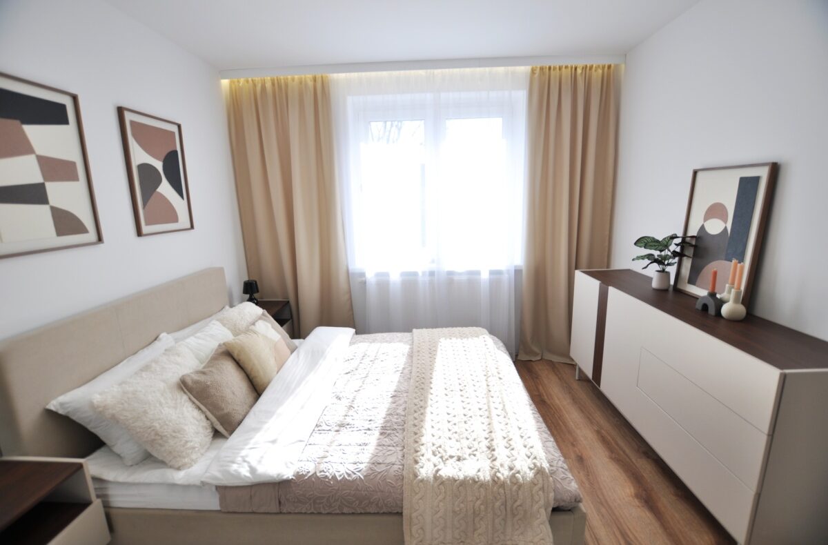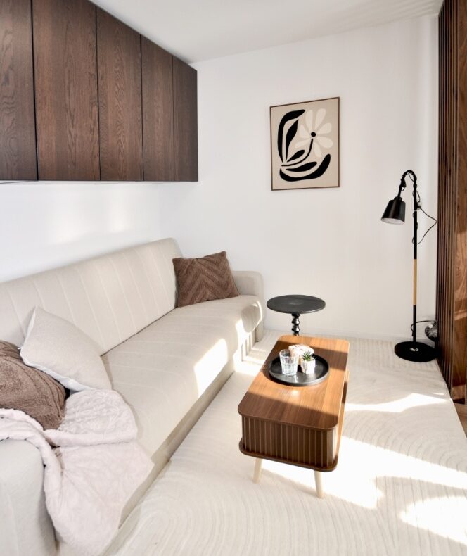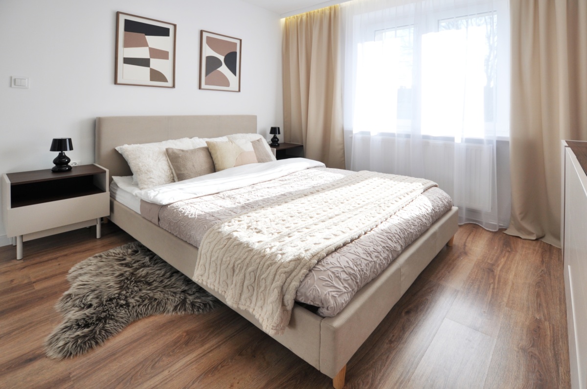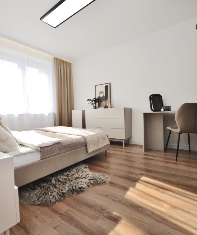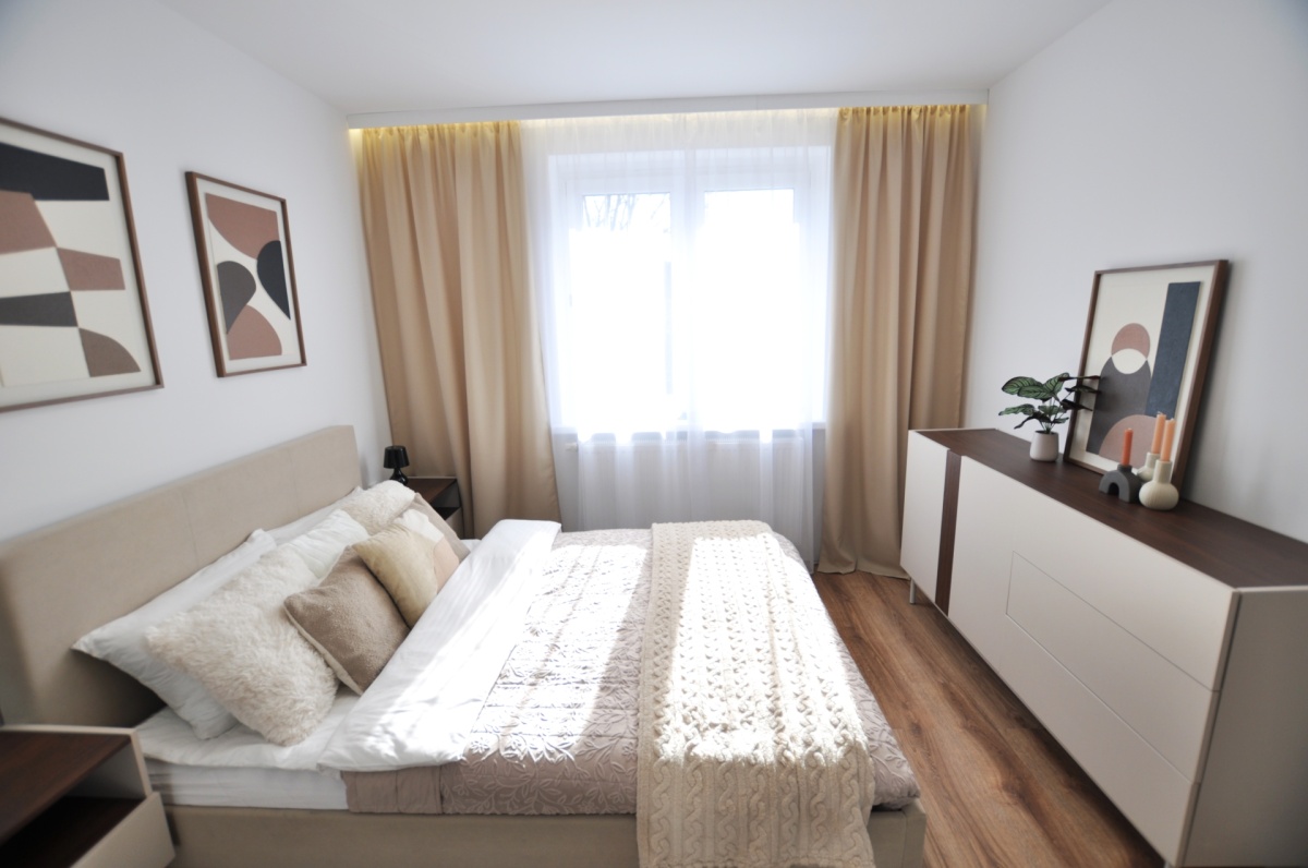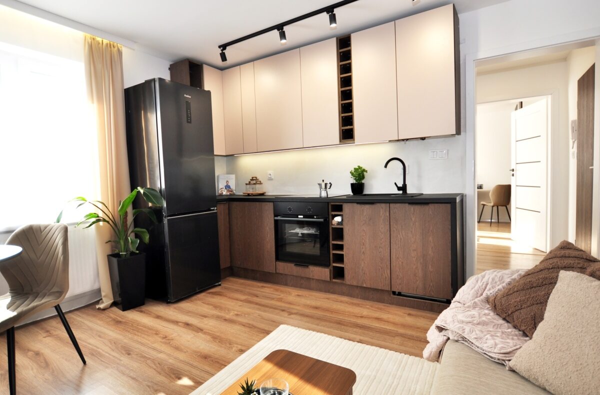 Dużym atutem jest również sam standard przygotowania mieszkania. Układ instalacji został zaprojektowany przez architekta, wnętrze dopracowała projektantka, a końcowy efekt został przygotowany z dbałością o estetykę i spójność całej przestrzeni. Dzięki temu mieszkanie prezentuje się bardzo nowocześnie, elegancko i ponadprzeciętnie dobrze — co widać od pierwszego wejścia.