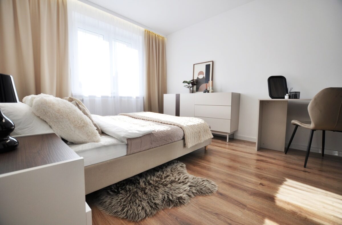 – układ: 2 pokoje — salon z kuchnią + duża sypialnia
