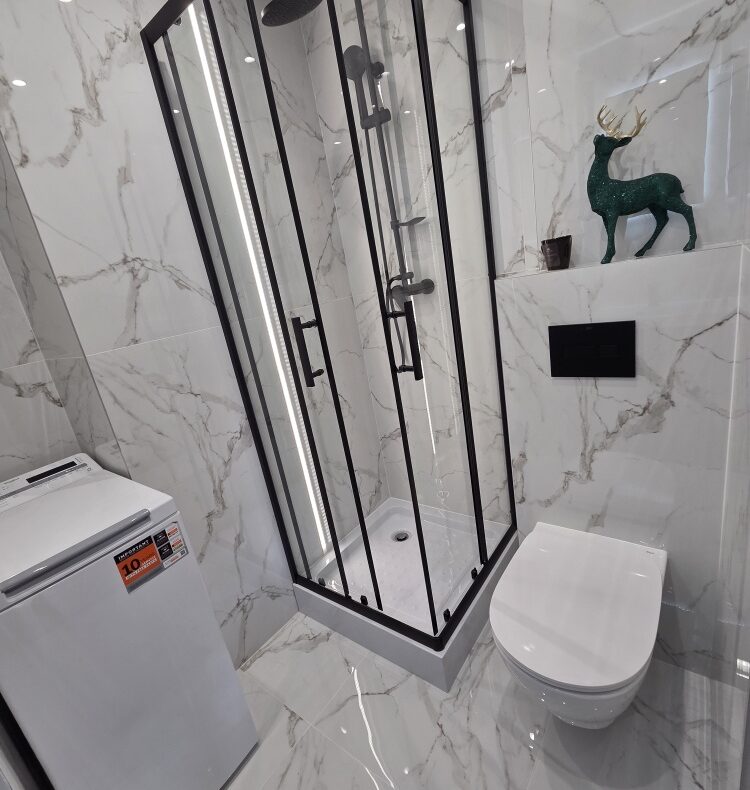 ✔ Podwieszane WC i szafki – cichy domyk.