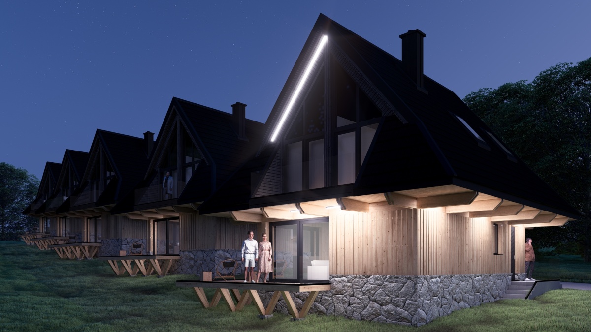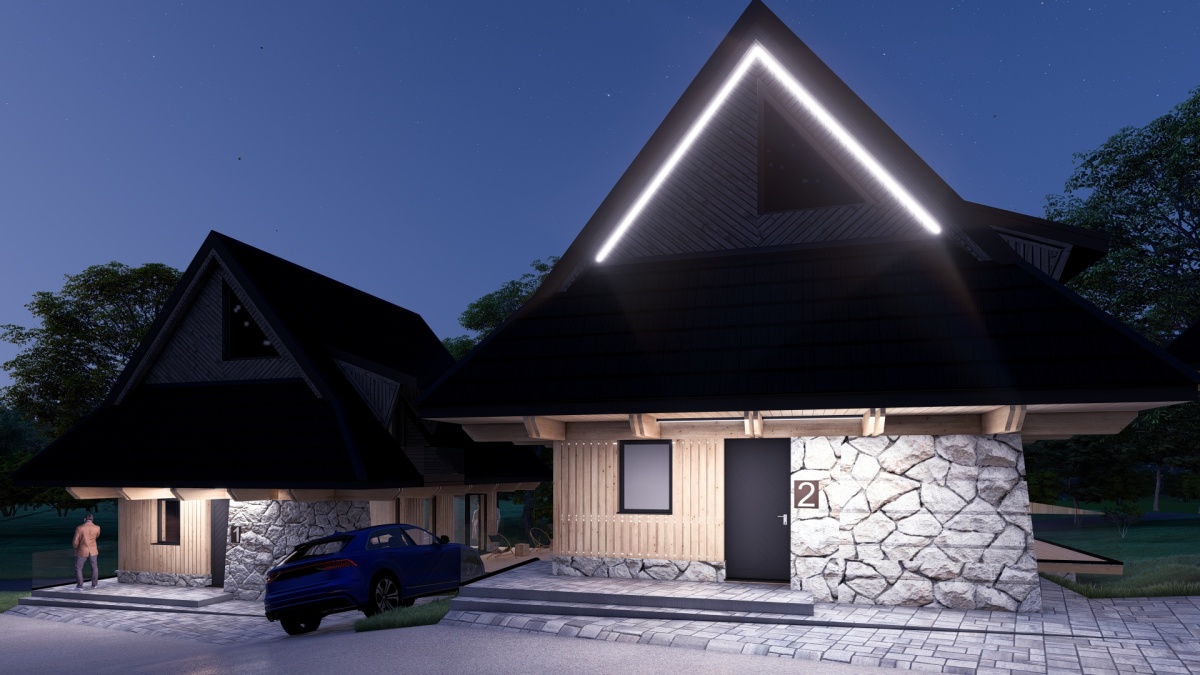*każdy dom o powierzchni użytkowej 82 m2, 3 pokoje, 2 łazienki, salon z aneksem kuchennym, narciarnia