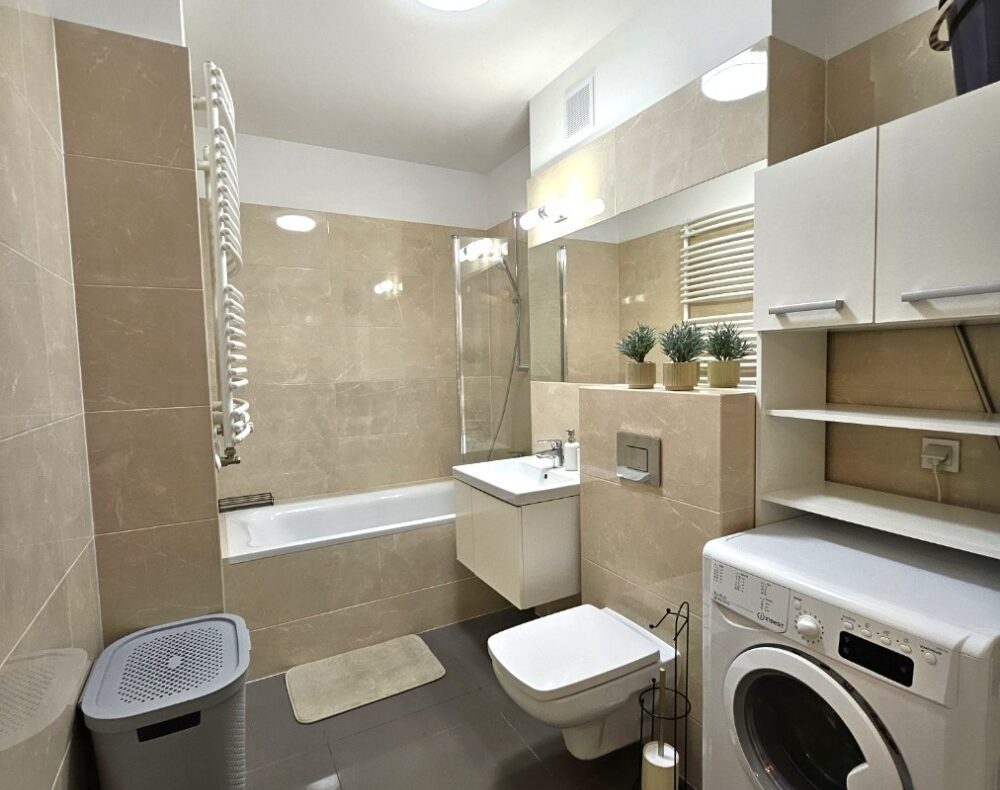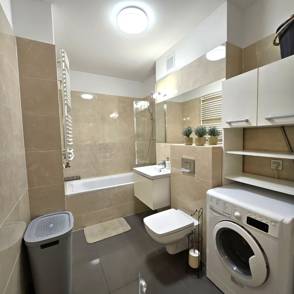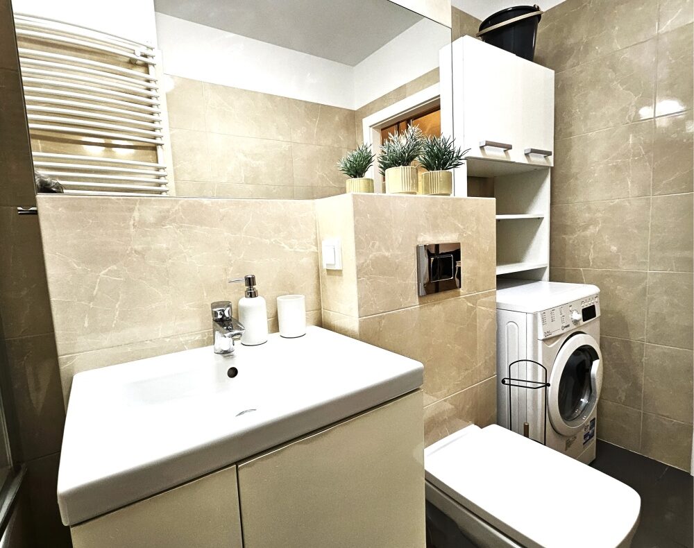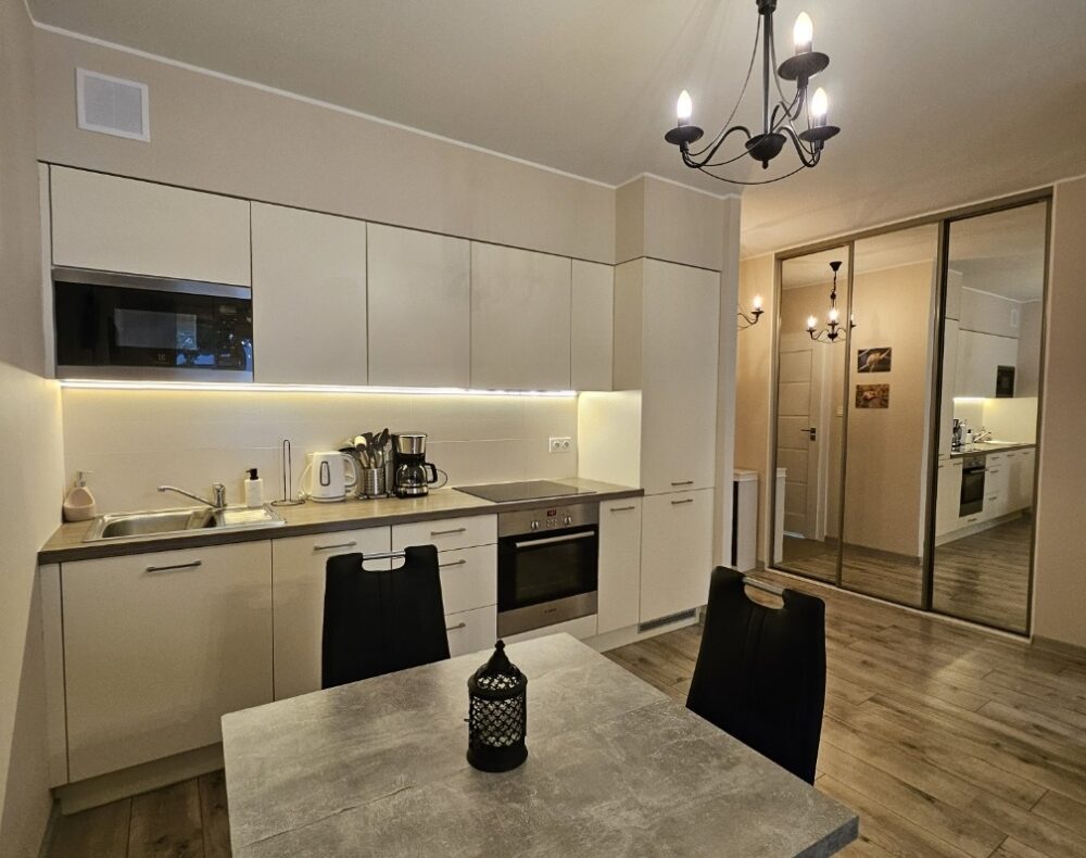 W pełni wyposażone w sprzęt AGD, takie jak; pralka, zmywarka, lodówka, kuchenka mikrofalowa, płyta indukcyjna, piekarnik.