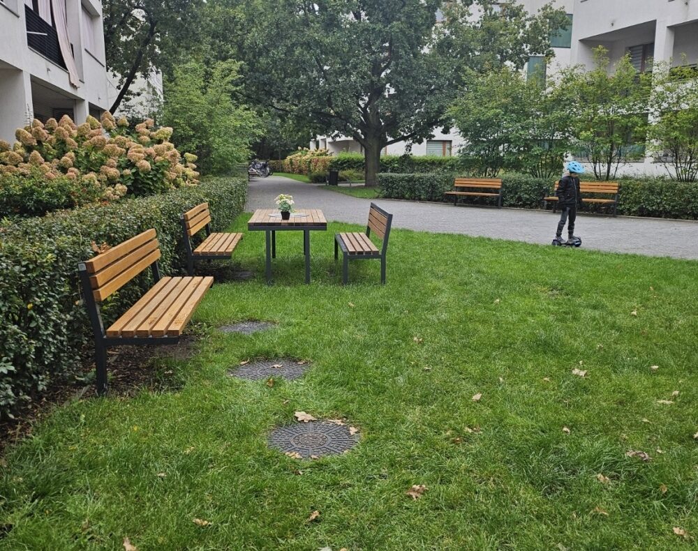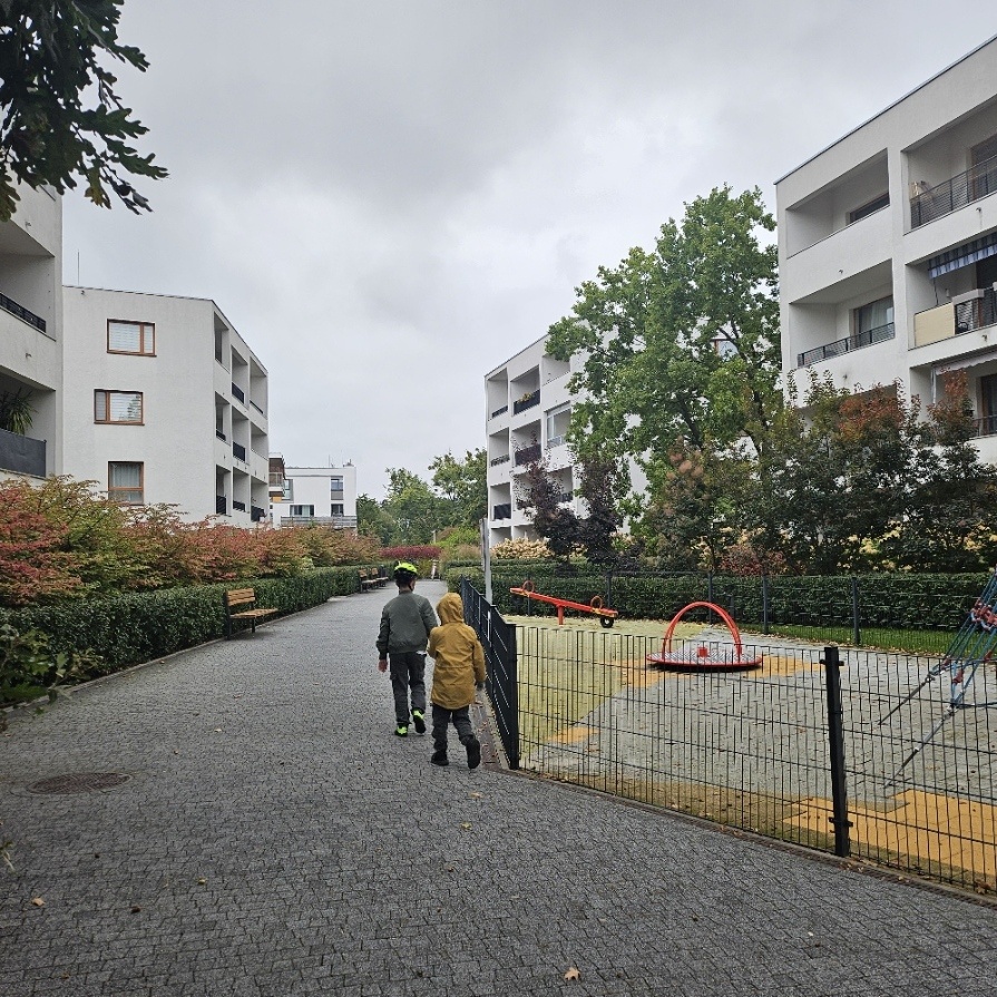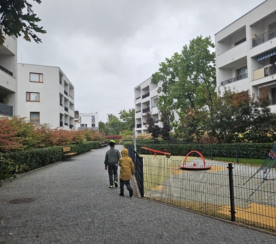 Lokalizacja jest idealna dla osób ceniących bliskość osiedlowej zieleni oraz cisza i spokój bez wewnętrznego hałasu samochodów / miejsca parkingowe są tylko w strefie wjazdu na osiedle /. Na teranie osiedla są wydzielone place zabaw. W pobliżu znajdują się sklepy, punkty gastronomiczne, przedszkola, apteka, park.