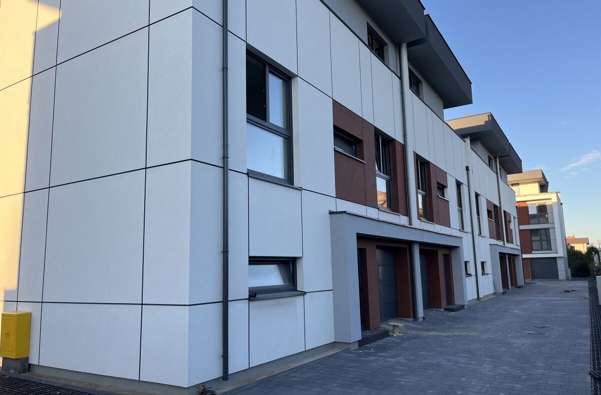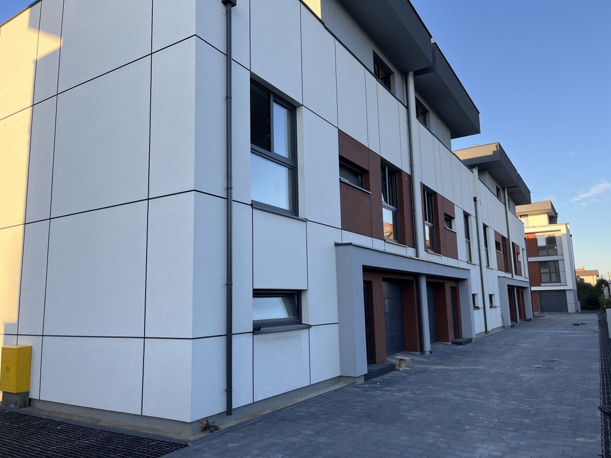 Przestrzeń i komfort: Każdy dom oferuje aż 5 przestronnych pokoi o wysokości do 2,9 m, 3 łazienki, WC, garaż w bryle budynku, kotłownię, pralnię, salon z aneksem kuchennym i ogródkiem oraz taras na II piętrze z widokiem na Warszawę.