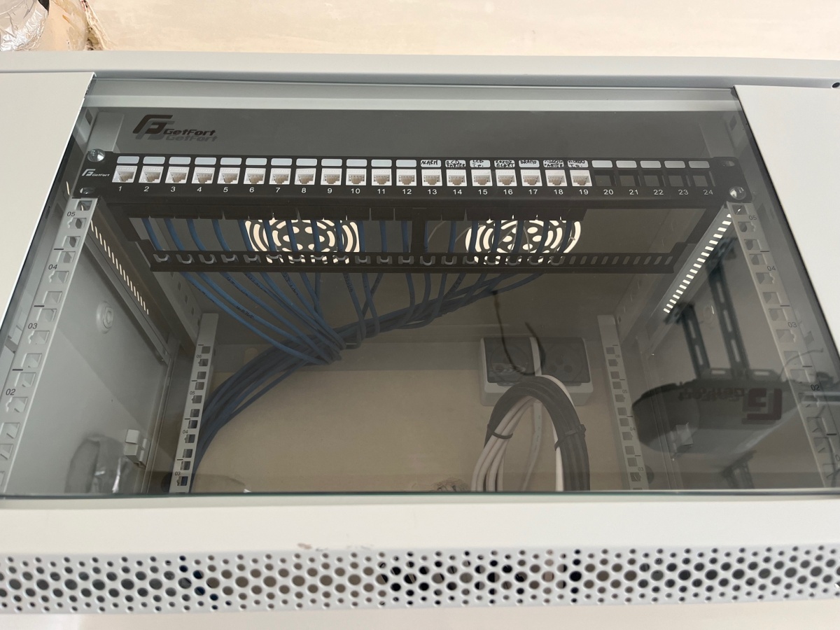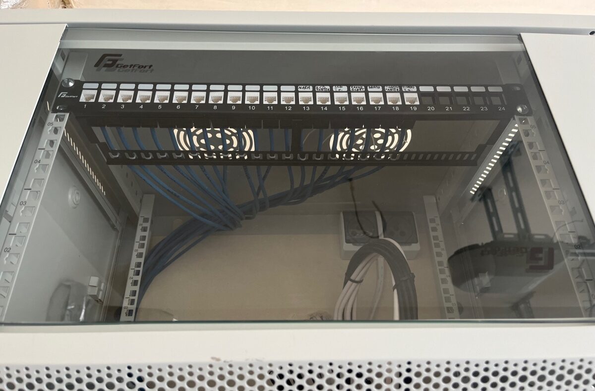 Rozbudowana sieć komputerowa z zaszytą szafa RACK – po 2 punkty komputerowe w każdym pokoju,