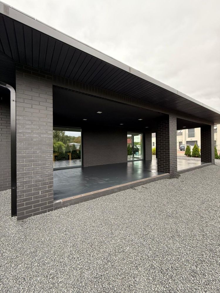 Drzwi wewnętrzne, zewnętrzne oraz okna w całym domu wykonane z aluminium co zwiększa poziom bezpieczeństwa oraz podnosi standard wykonania.