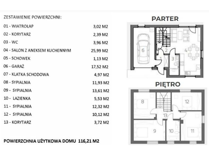 powierzchnia użytkowa: 116,2 m² (brak skosów na piętrze)