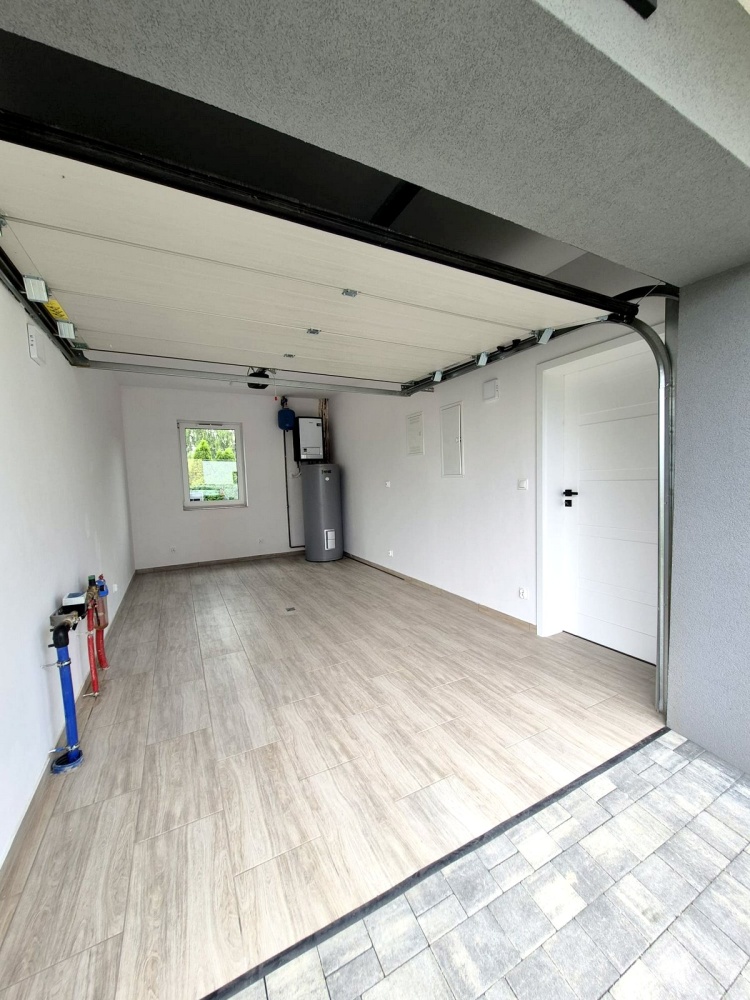 garaż w bryle budynku (brama na pilota)