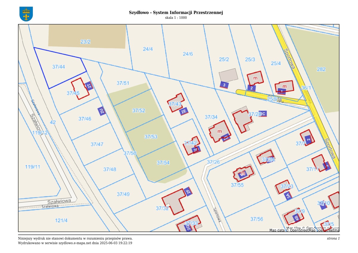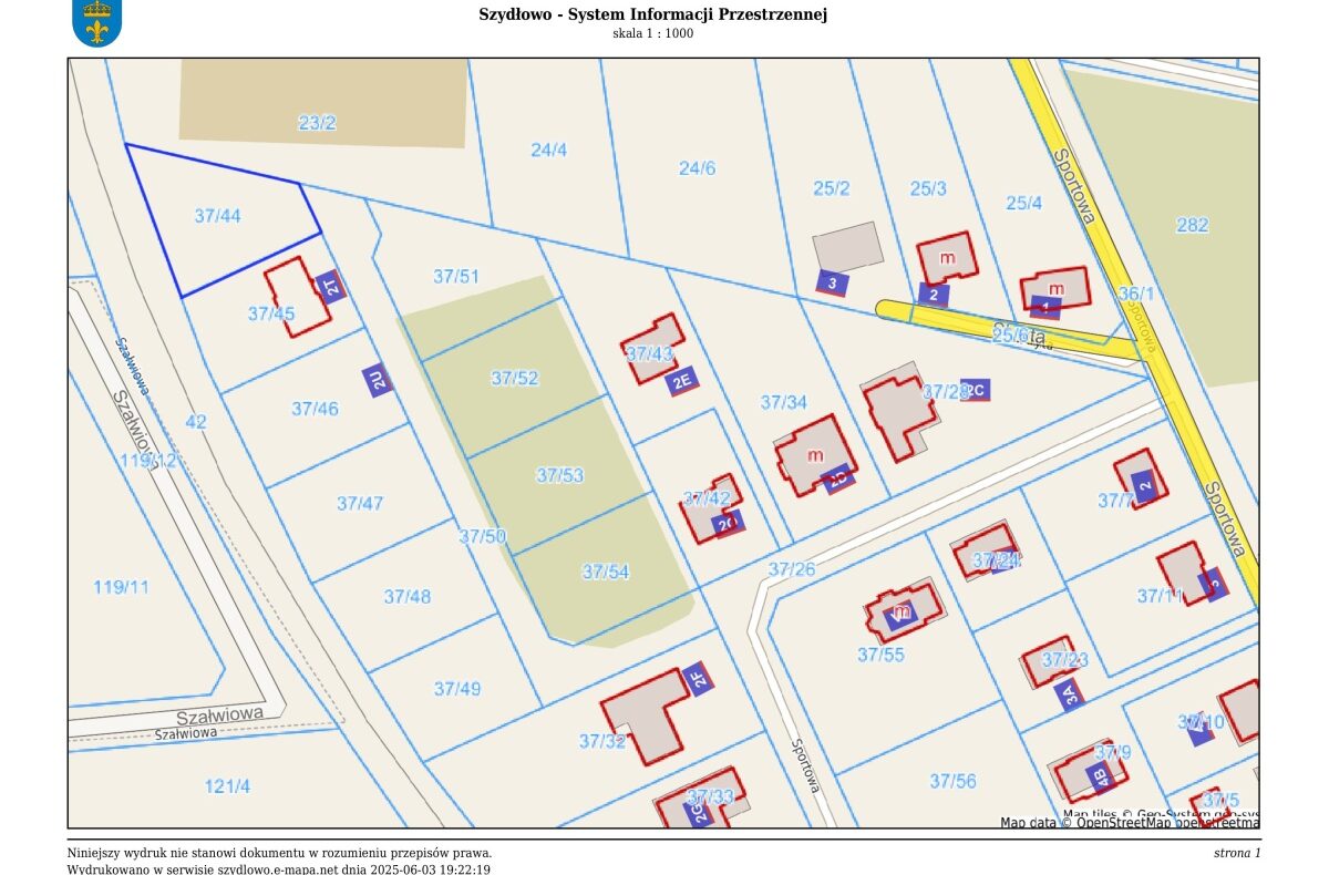 Na sprzedaż działka budowlana przy ulicy Sportowej w Szydłowie w stale rozwijającym się osiedlu domów jednorodzinnych.