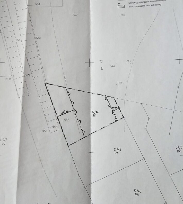 Nieruchomość gruntowa w kształcie trapezu.