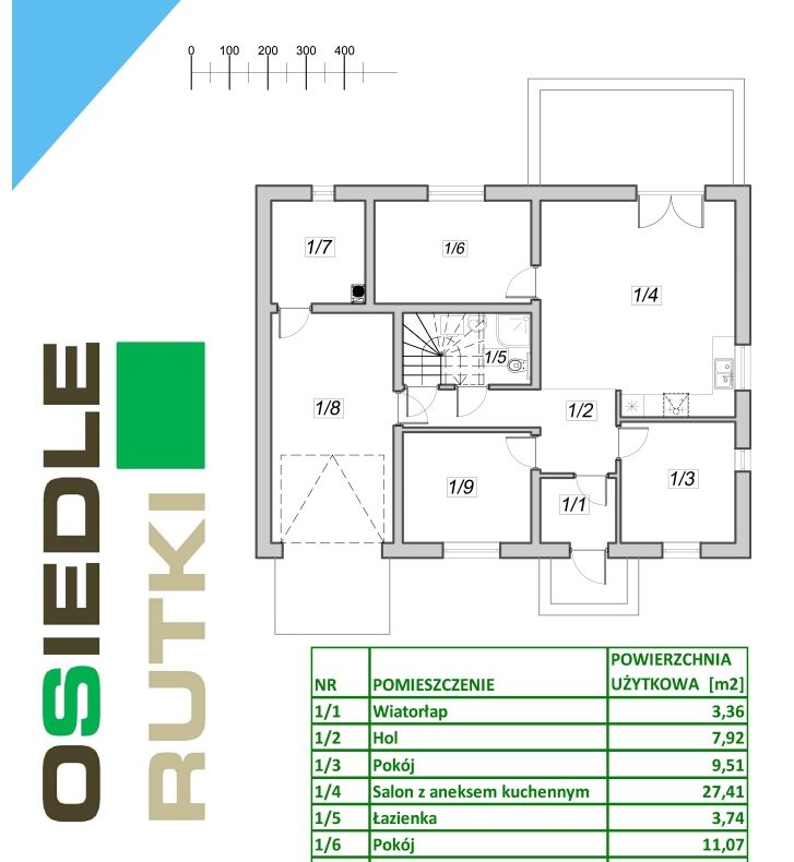 Dom z poddaszem z możliwością jego wykorzystania na użytkowe, rozkład pomieszczeń w poszczególnych budynkach zgodnie z załączonymi metryczkami budynków.