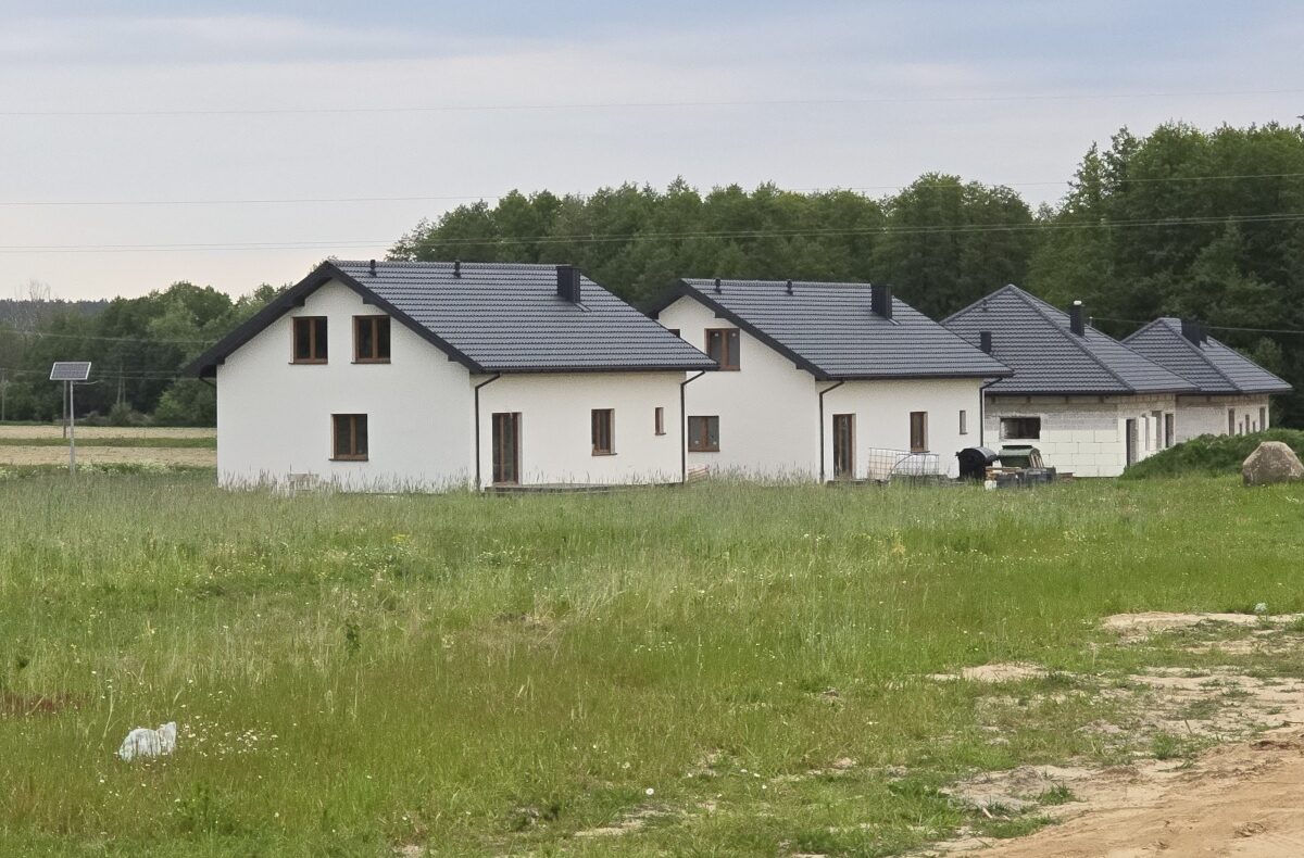 Budynki w stanie deweloperskim z wykończoną elewacją zewnętrzną , oknami, drzwiami wejściowymi, z rozprowadzonymi wewnątrz instalacjami na parterze ; elektryczną, wod-kan, instalacją CO z ogrzewaniem podłogowym na parterze i pompą ciepła.