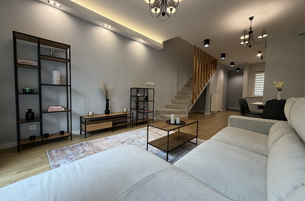 Sprzedam bezpośrednio niedawno wykończony w standardzie premium 96 metrowy segment w doskonałej lokalizacji. Segment składa się z salonu z aneksem kuchennym, 3 sypialni, pokoju otwartego (możliwość przerobienia na 5 pokój), dużego tarasu, ogródka, pomieszczenia gospodarczego/pralni oraz miejsca parkingowego. Świetny układ oraz ustawne pomieszczenia. Cała powierzchnia jest powierzchnią w pełni użytkową, nie ma żadnych skosów. Podział na trzy strefy/poziomy zapewnia domownikom ciszę i kameralność. W całym budynku wykonano gładzie, jest on w pełni wykończony i wyposażony. W tym segmencie nie ma dylematu prysznic, czy wanna oraz problemu zajętej łazienki, ponieważ znajdują się w nim aż 3 łazienki. Wyjście na ogródek z salonu. Na ostatnim piętrze duży kameralny taras!. W cenie miejsce parkingowe (bezpośrednio przy segmencie z dodatkową przestrzenią do przechowywania rowerów). Możliwość wprowadzenia się od zaraz. Nieruchomość położona jest pomiędzy ulicami Szwoleżerów oraz Gajową. Dojście do osiedla z obu ulic, wjazd drogą asfaltową od ulicy Gajowej. Dodatkowe miejsca parkingowe w bocznych ulicach. W bezpośrednim (100m) sąsiedztwie przystanki autobusowe linii 199 (metro trocka, pkp, skm) oraz 245 (metro Kondratowicza), szkoła, przedszkole, basen, kręgielnia, liczne sklepy, siłownia, poczta, lokale usługowe oraz LAS!. Cicha i spokojna okolica. Pośredników zapraszam tylko z klientem.