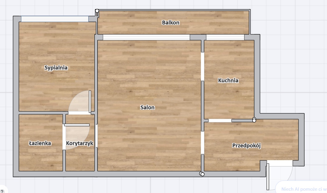Dzięki świetnemu rozkładowi mieszkanie wydaje się dużo większe, niż wskazuje metraż. W łazience jest duży i wygodny prysznic oraz miejsce na pralkę. Na podłodze pozostawiono parkiet dębowy, który został wycyklinowany.